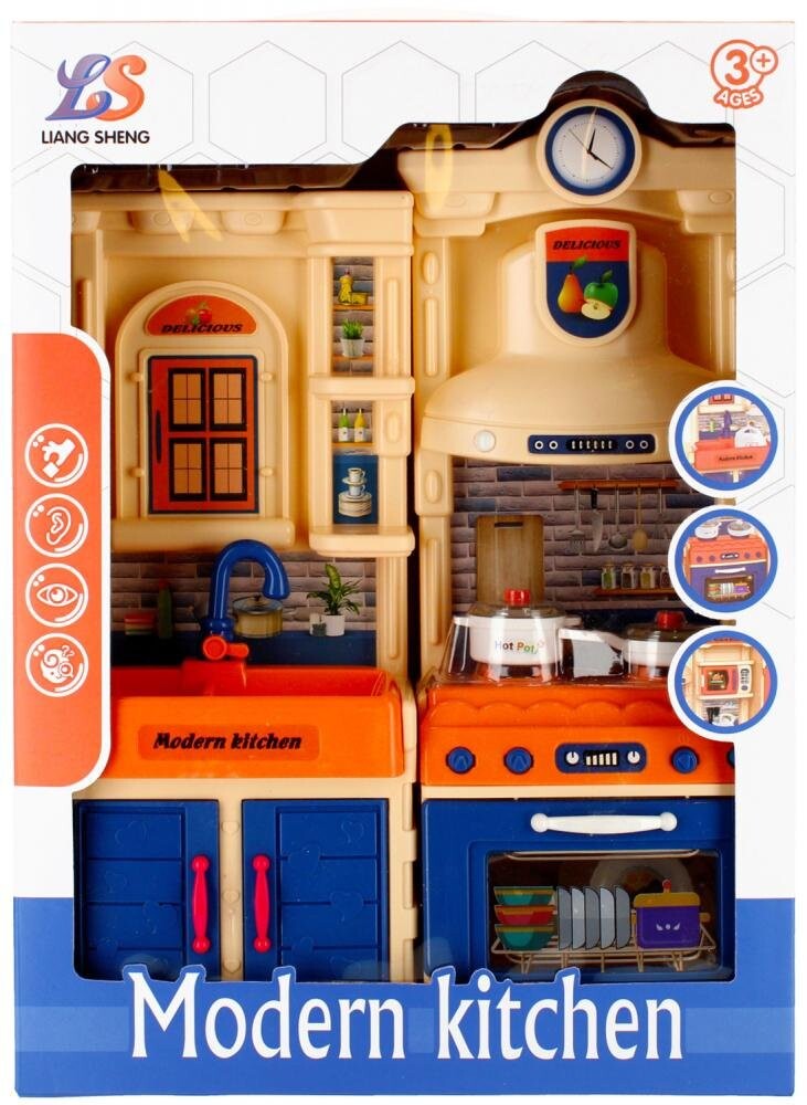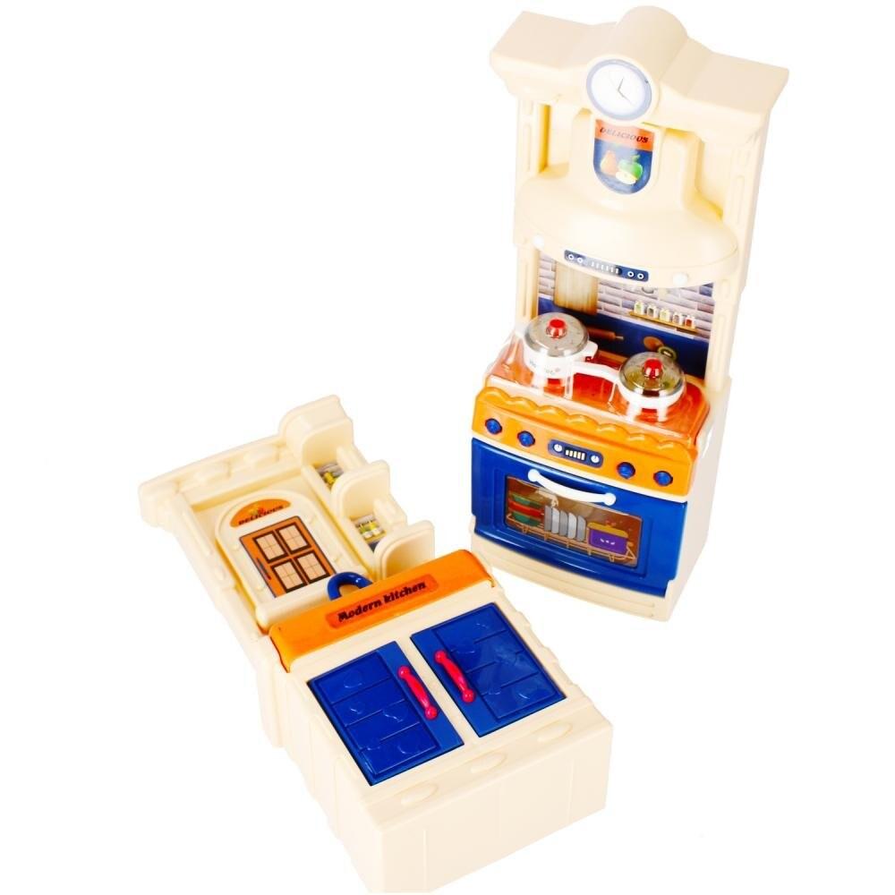 Преимущества товара Комплект кухонной мебели – незаменимый инвентарь кукольного домика вашего ребенка. Мебель MEGA CREATIVE доставит массу удовольствия каждому ребенку. Мебель имеет звуковые и световые функции, при включении плиты создается эффект настоящего приготовления пищи, который вы можете увидеть, услышать, когда ставите кастрюли. плита, а раковина при нажатии на кран издает звук льющейся из крана в раковину воды. В комплект входят газовая плита, мойка, духовка, шкафчики и кухонные принадлежности – кастрюля с крышкой, сковорода с крышкой, набор посуды, жидкость для мытья посуды и набор чистящих средств – все изделия являются имитацией настоящих. . Все сделано из пластика и картона. Размеры упаковки: длина х высота х глубина см 28х38х9. Вес упаковки кг 0,81 кг Размеры изделия длина х высота х глубина Полка для плиты 13х36х8 см, полка для мойки 14х32х8, вес товара без упаковки 0 61 кг. Требуется питание от 6 батареек AAR6 1,5 В – в комплект не входят. Игрушка предназначена для детей от 3 лет. Упаковано в коробку с окошком. Упаковка в коробке по 18 штук.