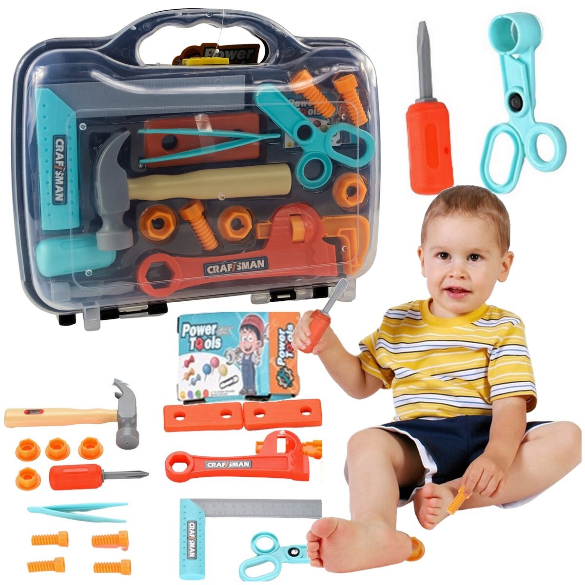 Представленный набор наверняка понравится каждому мальчику! Коробка s отличается не только универсальностью и великолепным дизайном – она состоит из различных элементов, которые гарантируют фантастическое развлечение. Каждый из инструментов, входящих в набор, несмотря на свой реальный внешний вид, имеет безопасную, обтекаемую форму, обеспечивающую комфорт и простоту использования. Размер игрушечных инструментов адаптирован под руки детей нескольких лет, благодаря чему игра доставляет огромное удовольствие.