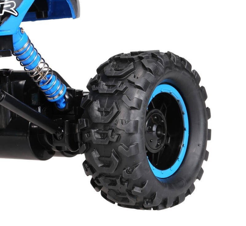 Специально сконструированная подвеска означает, что автомобиль всегда приземляется на 4 колеса. Это также обеспечивает прямой контакт с землей каждого колеса даже в самых сложных положениях и при экстремальных поворотах осей относительно друг друга. Это в сочетании с приводом 4WD означает, что машина не застревает среди препятствий и не зависает ни на одном из них. Это автомобиль, созданный для того, чтобы добраться куда угодно, независимо от условий. куда обычные автомобили не могут добраться. Специальные шины с толстым протектором и повышенной мягкостью обеспечивают отличное сцепление с дорогой и удерживают машину на трассе. Rock Crawler изготовлен из специального армированного пластика – ABS. Благодаря этому он защищен от повреждений, которые могут возникнуть в результате несчастных случаев.