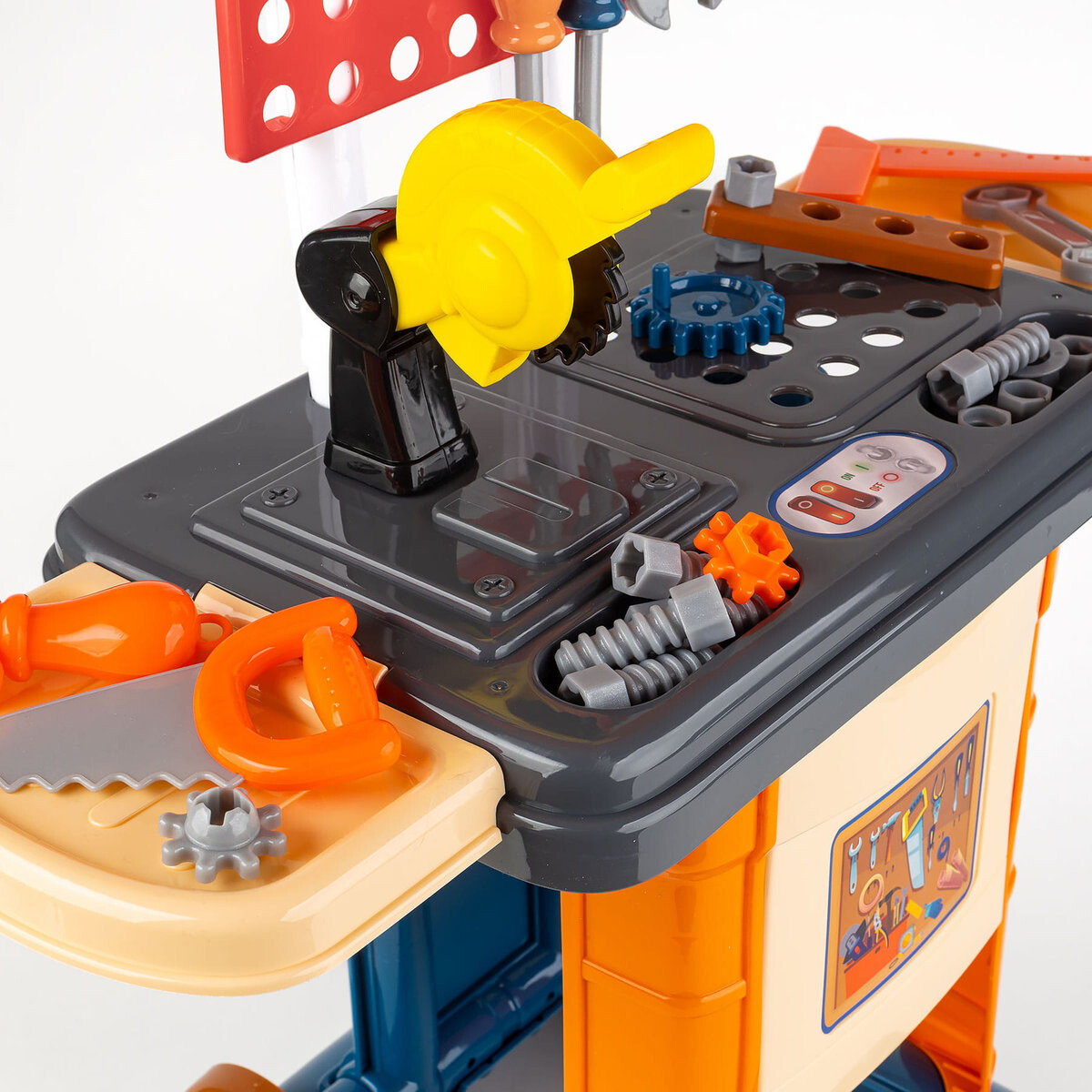 Мастерская своими руками поможет быстро поддерживать порядок благодаря чемодану 3 в 1. и ваш ребенок сможет брать его с собой куда угодно! Благодаря колесам и ручке в чемодане набор сможет переносить даже самый маленький любитель DIY.