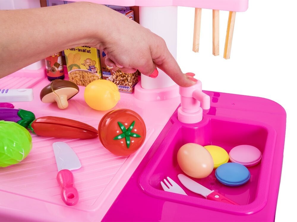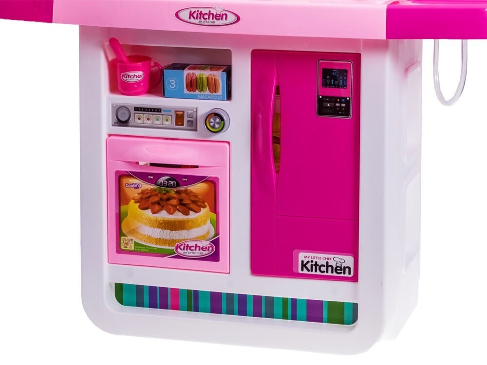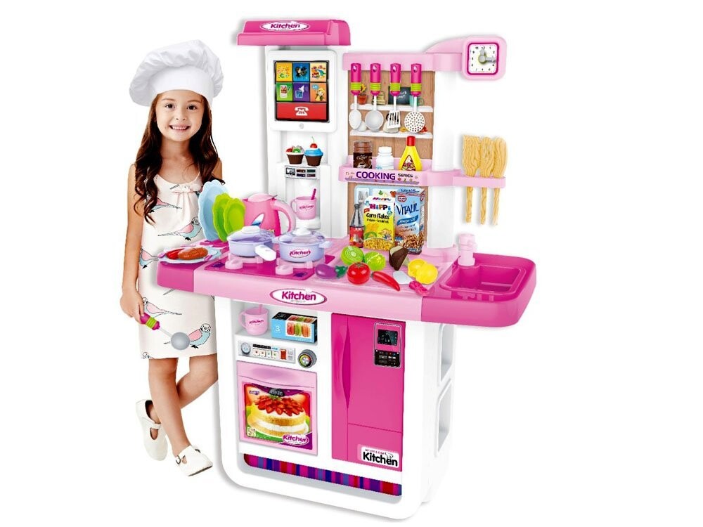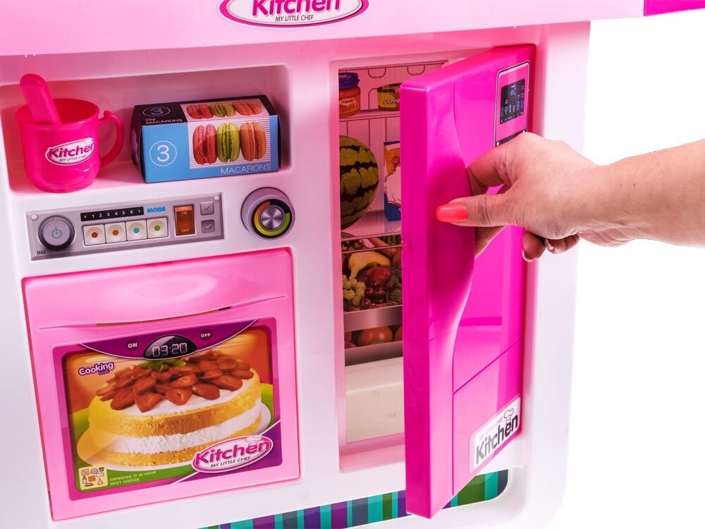 Почти каждый маленький ребенок любит помогать готовить домашнюю еду, а если ему это не нравится, то наверняка понравится благодаря этому удивительному набору. Безопасная кухня для игр дома, ресторана, бара – это предложение для ваших детей. Отличная идея подарка для молодых будущих поваров, помощников поваров, рестораторов и т.д. Игра в кулинарию развивает воображение ребенка, учит его принципам приготовления пищи, учит его домашним делам. Одно удовольствие «съесть» вкусную еду, приготовленную собственным ребенком. Маленький повар теперь сможет легко организовать вечеринку по случаю дня рождения для своих кукол и плюшевых мишек. Еще веселее то, что во время игры на кухне есть холодильник для хранения продуктов и духовка. раковина и все необходимое на кухне.