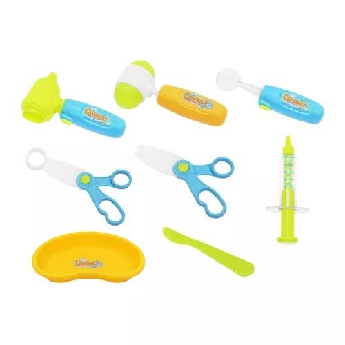 Имитации медицинских инструментов, таких как стетоскоп, отоскоп, пульсометр, термометр, стоматологическое зеркало, помогут вам провести время время творчески неврологический молоток, шприц, ножницы, щипцы, глазные капли, мыло для рук в тюбике, миска, скальпель, очки без линз, флакон, бейдж-клипса с местом для написания имени и приклеивания фотографии , а также пластиковый блокнот с возможностью подвешивания.