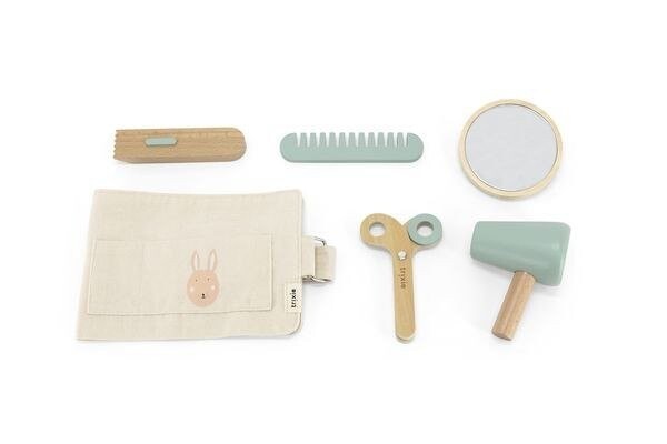 Красивый маленький парикмахерский набор, гарантирующий много часов удовольствия! Благодаря ему дети смогут поиграть в парикмахерскую со своими куклами, мягкими игрушками, друзьями и родителями. В набор входят ножницы, расческа, фен, зеркало и бритва. Все парикмахерские аксессуары умещаются в удобный парикмахерский пояс с карманами и отделениями, который во время игры можно повесить на бедро.
