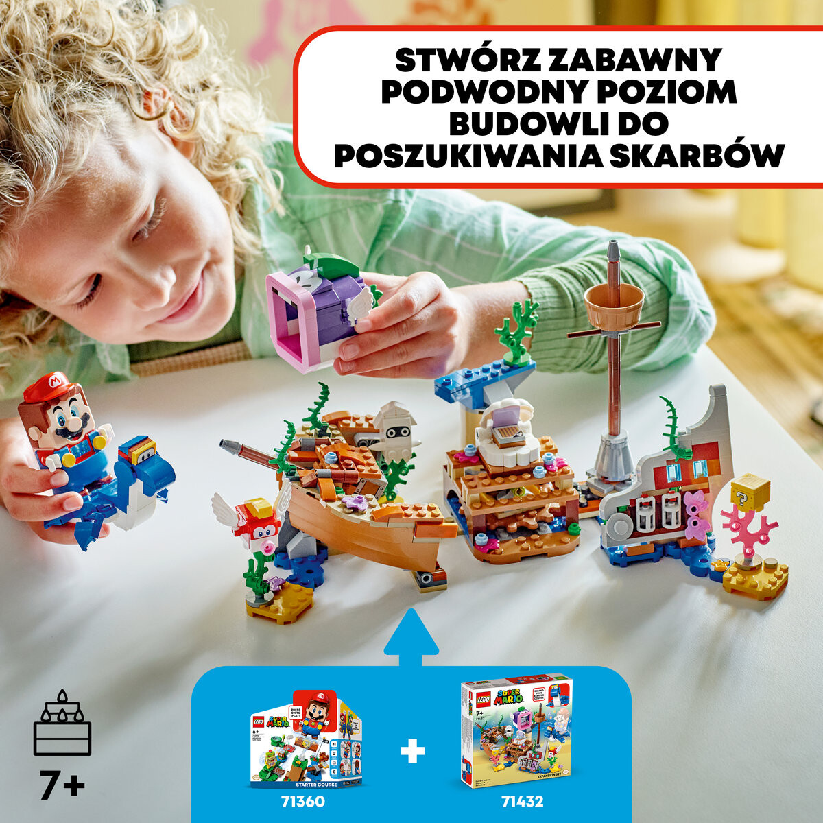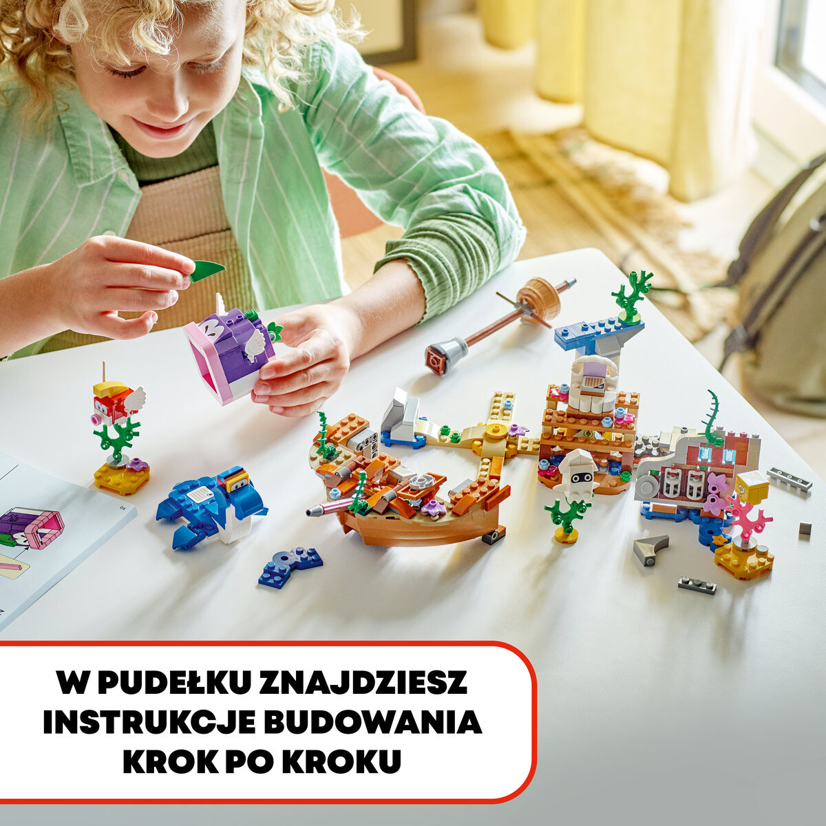 С помощью этого набора малыши смогут построить подводный уровень из мира LEGO Super Mario и отправиться на поиски сокровищ.Дополнение к стартовому набору (продается отдельно)