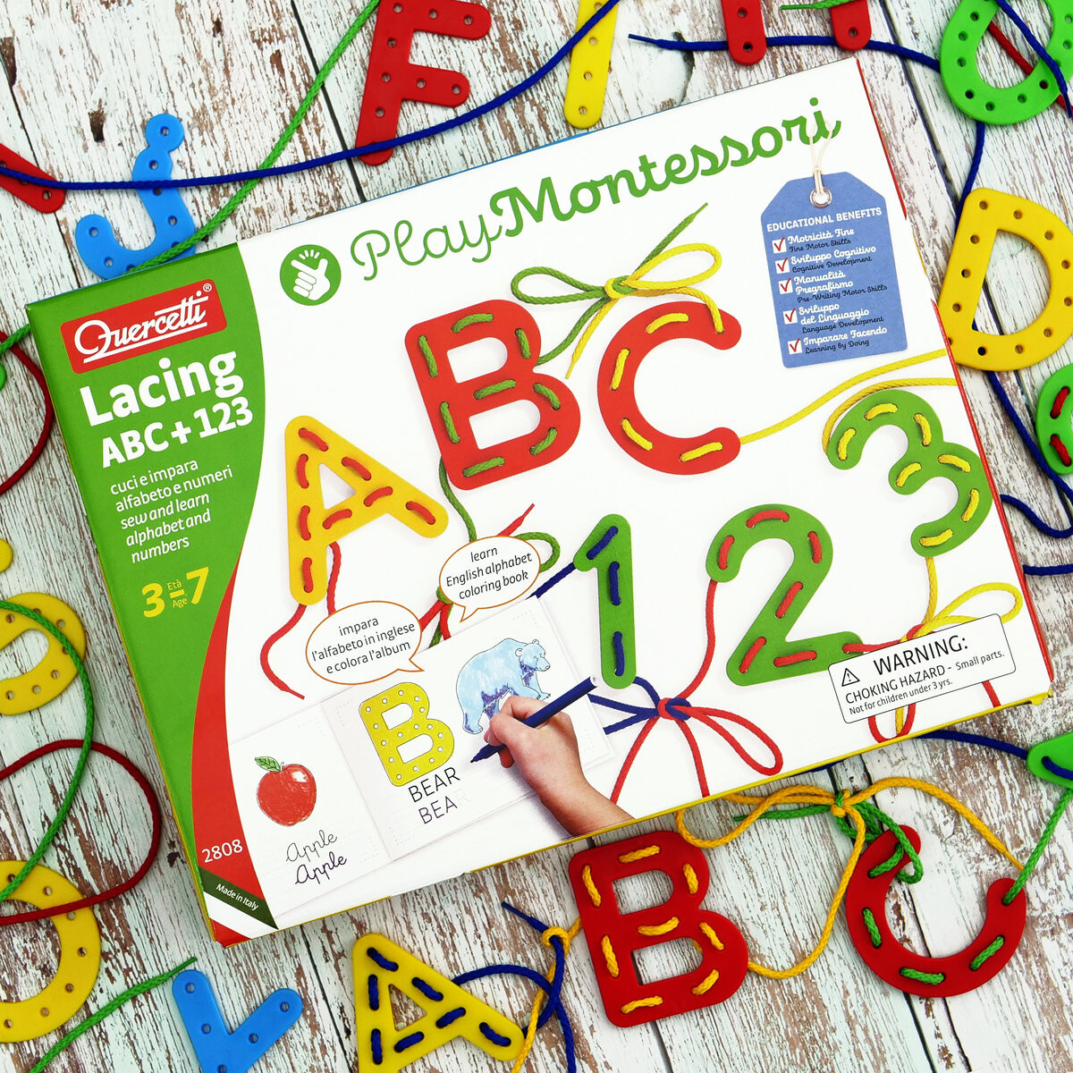 Внимание! Продукт не подходит для детей младше 3 лет. Использование игрушек Quercetti может принести детям много пользы в обучении.