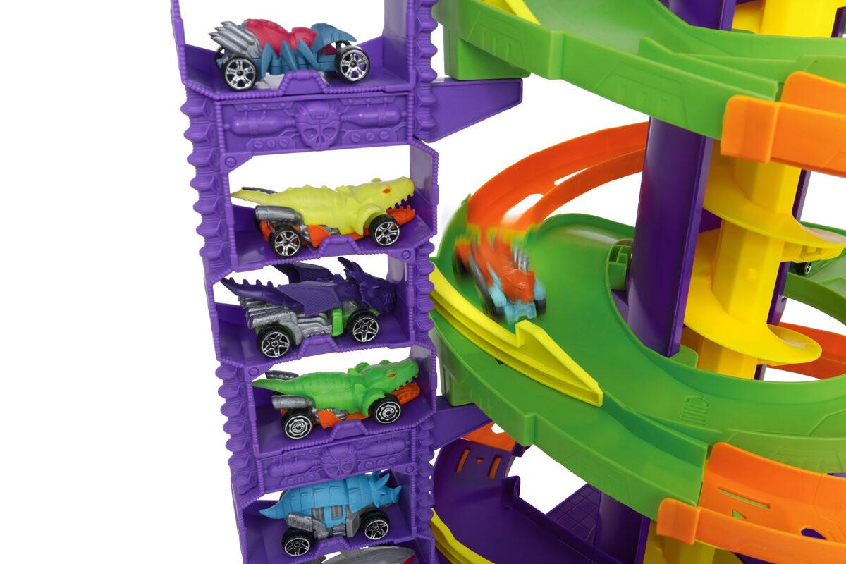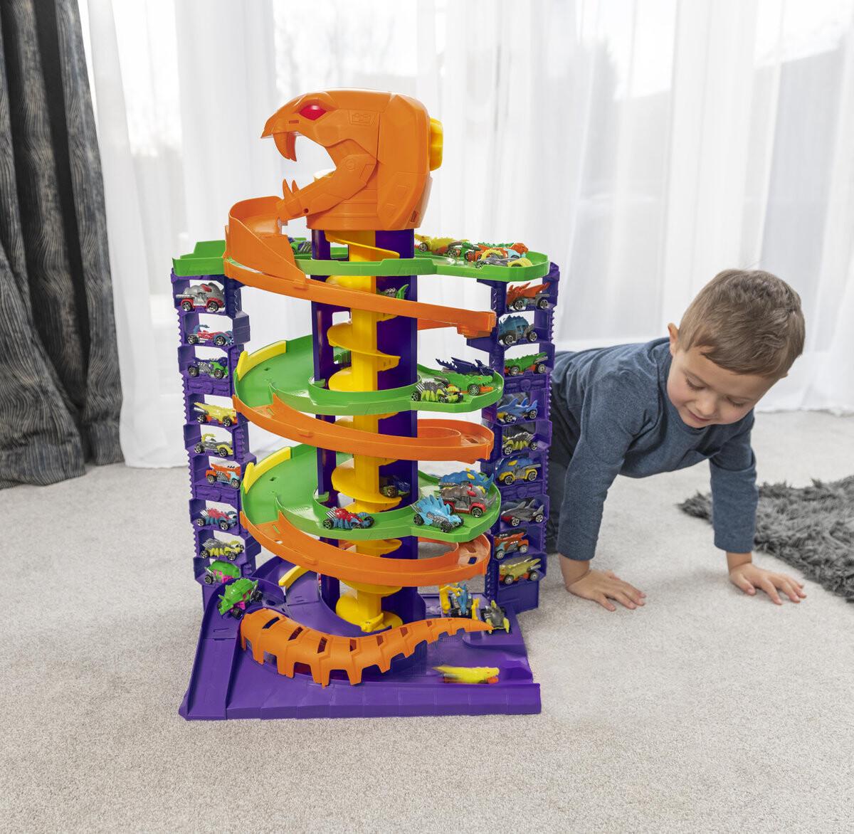 Набор Teamsterz Cobra Strike Garage 70 см + Автомобиль — идеальный выбор для детей, которые любят динамичные игры. Гараж состоит из нескольких уровней, по которым автомобили могут мчаться с головокружительной скоростью. Наверху их ждет огромная кобра со световыми и звуковыми эффектами, добавляющими дополнительный элемент азарта и испытания. Ваш ребенок сможет пережить незабываемые моменты, организуя забеги и различные игровые сценарии.