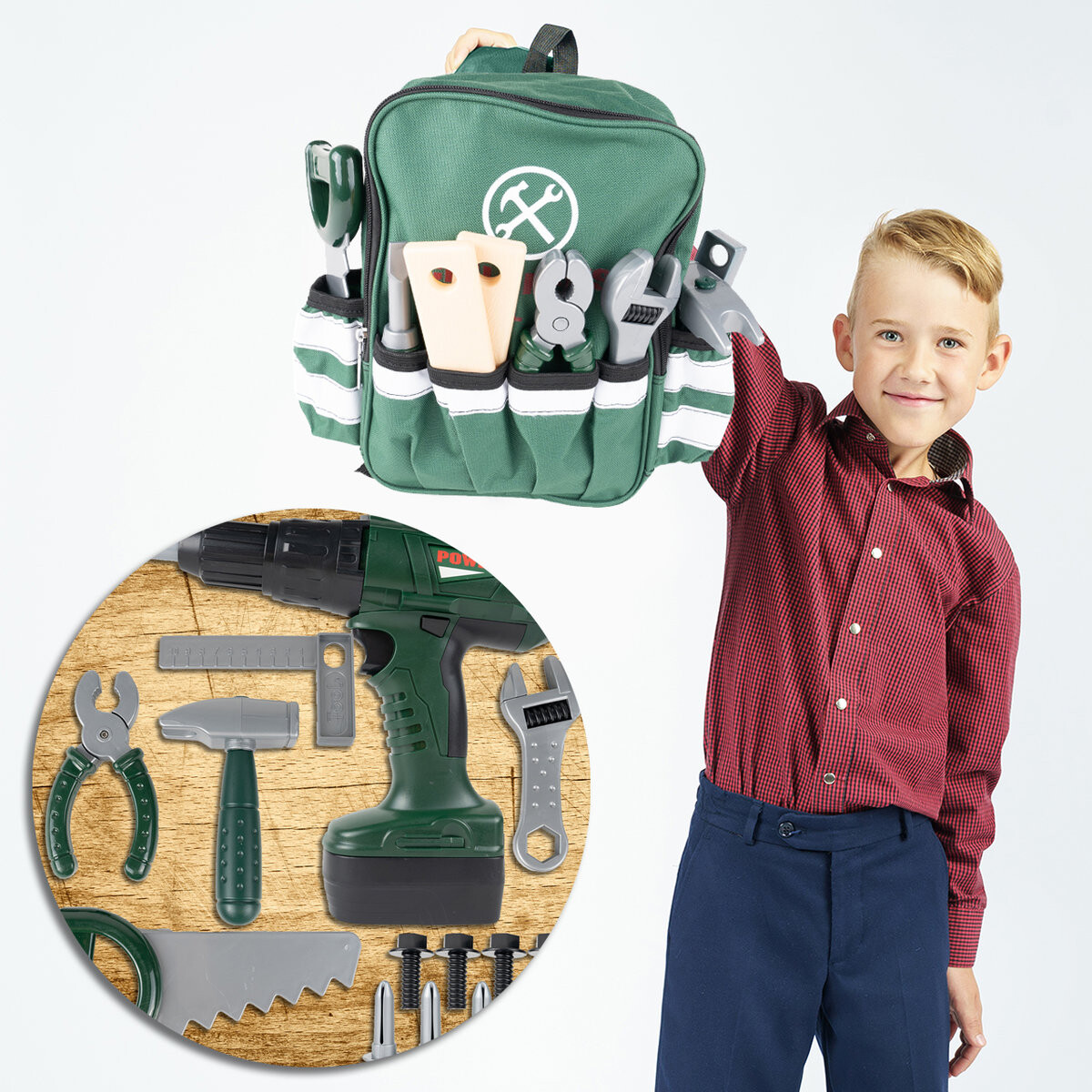 Рюкзак мастера с инструментами и аккумуляторной дрелью. Дети часто подражают своим родителям – а какой мальчик не хотел бы быть похожим на своего папу? 5901924227700