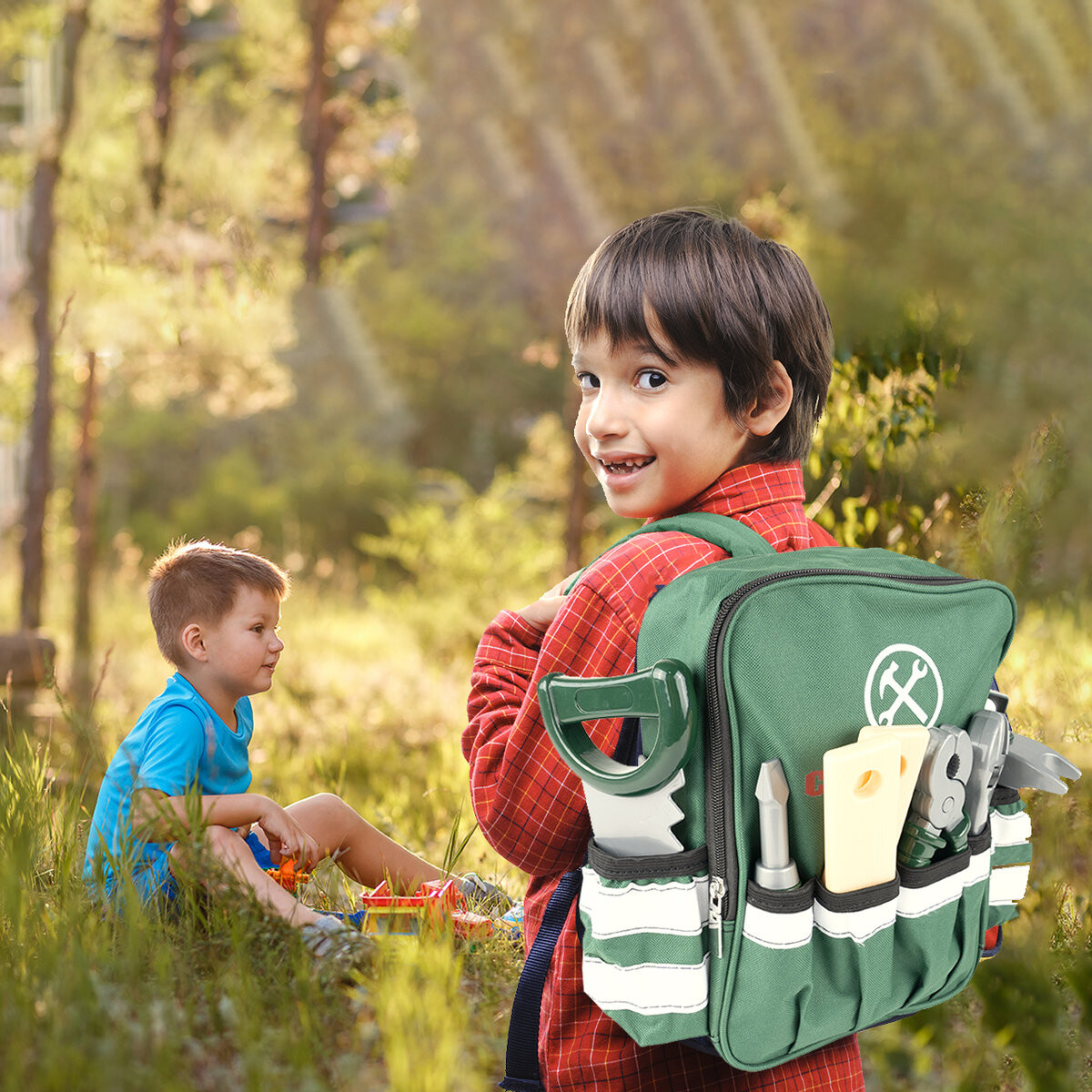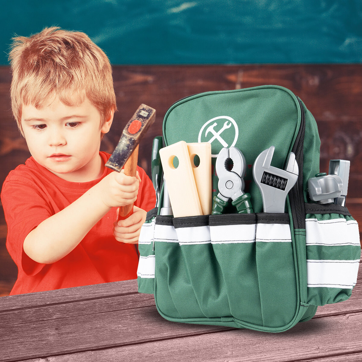 Все элементы можно хранить в просторном рюкзаке с многочисленными карманами. что позволит вам взять с собой необходимые инструменты! Набор прекрасно воспроизводит реальную технику и позволяет вам сыграть роль механика! Это также поможет вам познакомиться с использованием основных инструментов, полезных в повседневной жизни.