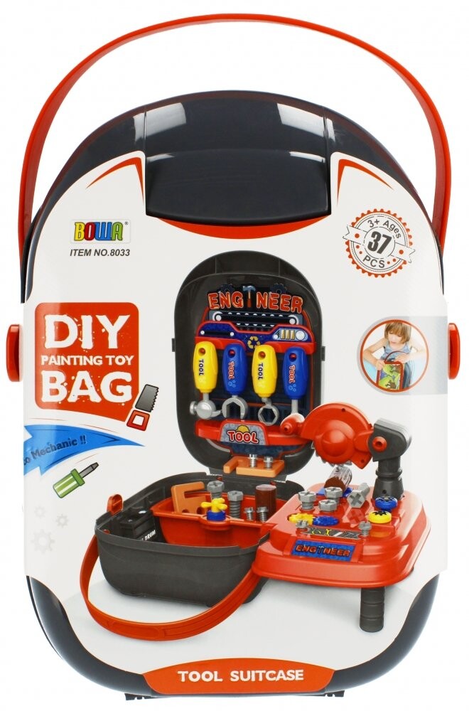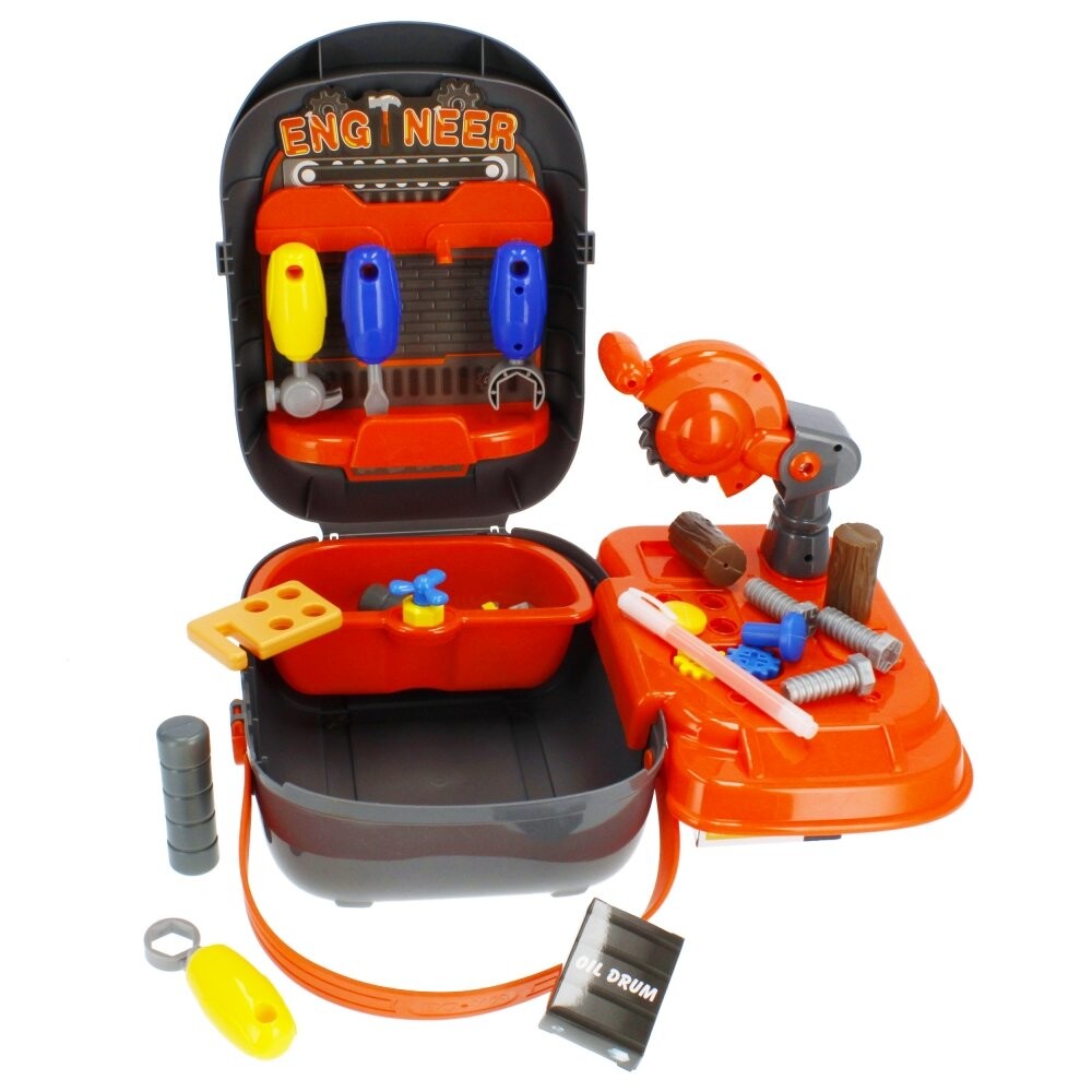 Преимущества товара: ребенок может узнать о возможностях и функционале простых инструментов, игрушка развивает мануальные навыки и пространственное мышление, набор заключен в чемоданчик с ручкой для удобной переноски инструментов.