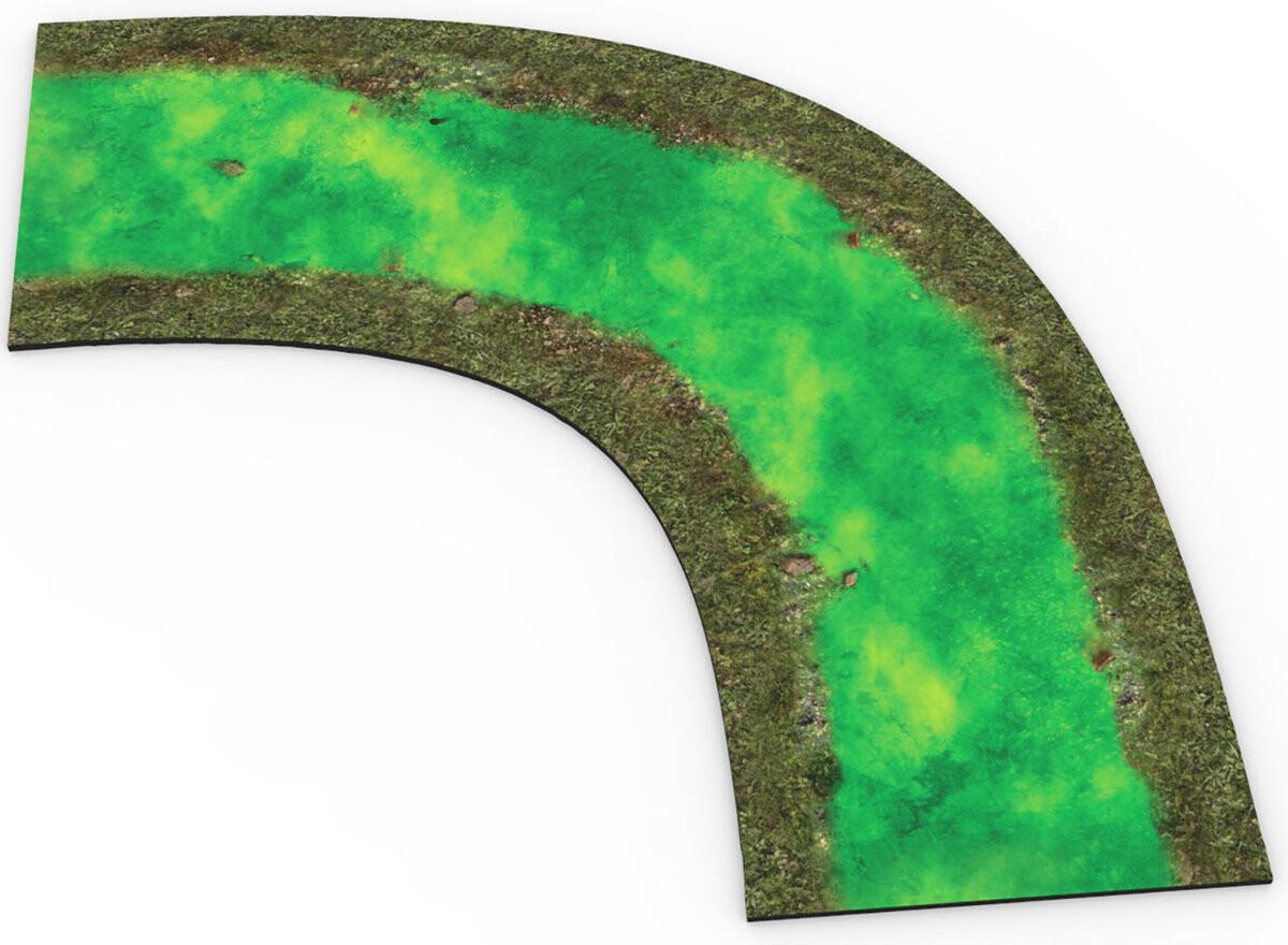 12-дюймовые модули можно свободно комбинировать, чтобы покрыть всю длину стандартных игровых столов с фигурками. Каждый прямой сегмент составляет ок. 30 см и ширина в месте соединения ок. 10 см; изгиб примерно 26 х 26 см.