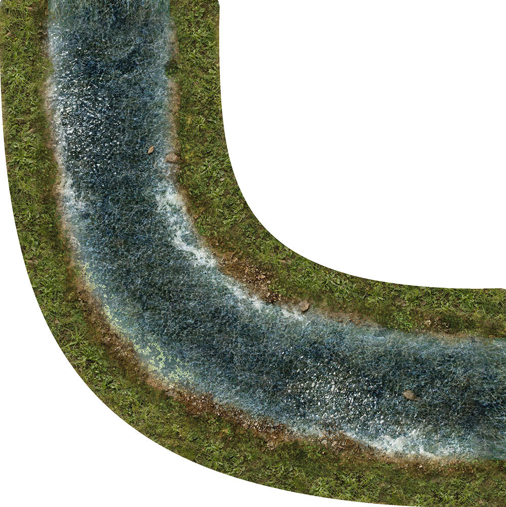 12-дюймовые модули можно свободно комбинировать, чтобы покрыть всю длину стандартных игровых столов с фигурками. Каждый прямой сегмент составляет ок. 30 см и ширина в месте соединения ок. 10 см; изгиб примерно 26 х 26 см.