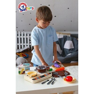 Новая интерактивная игрушка «Кухня ТехноК» как настоящая кухня «для взрослых». Различные «скрипящие» и «булькающие» звуковые эффекты, ярко-красная подсветка конфорок, а главное — потрясающий паровой эффект. Белый пар поднимается из кастрюли, на которой что-то «готовится». Но родителям можно не волноваться – пара всего лишь удачная имитация. здесь действительно холодно и безопасно для ребенка. Лучше всего это наблюдать в темной кастрюле с прозрачной крышкой.