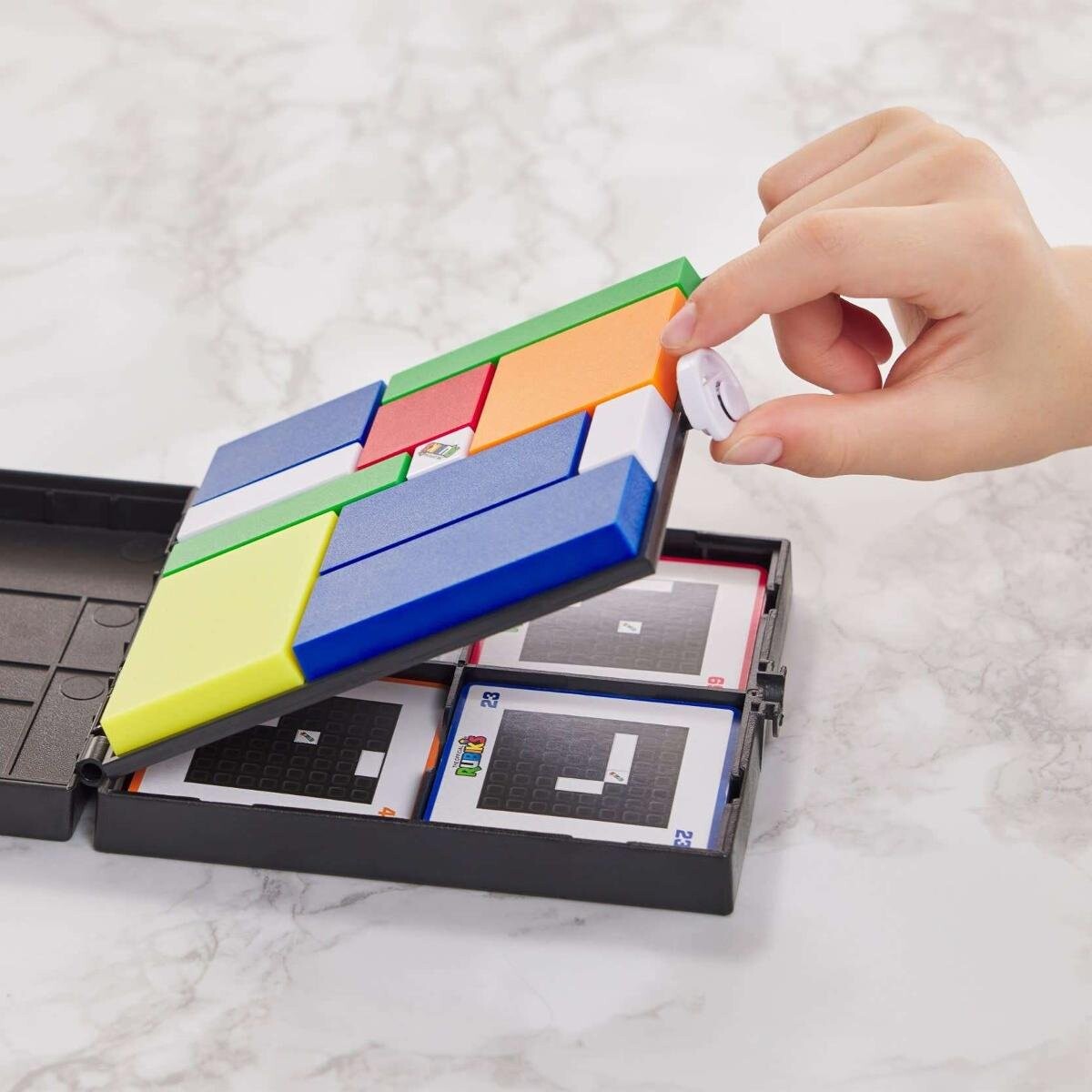 44 карточки с разным расположением блоков, доска для блоков, блоки различной формы и цвета.Это хорошая игра-головоломка для детей и взрослых, которым нравятся логические головоломки.