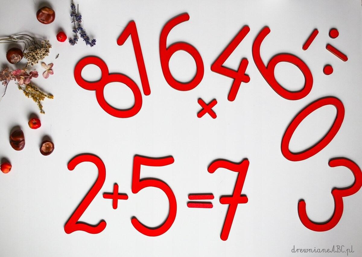 Цифры, выполненные по методу Монтессори.В наборе 20 шт. цифры – 2 шт. от каждого дополнительно:1x + знак, 1x - знак, 1x x знак, 1x ÷ знак, 1x знак =