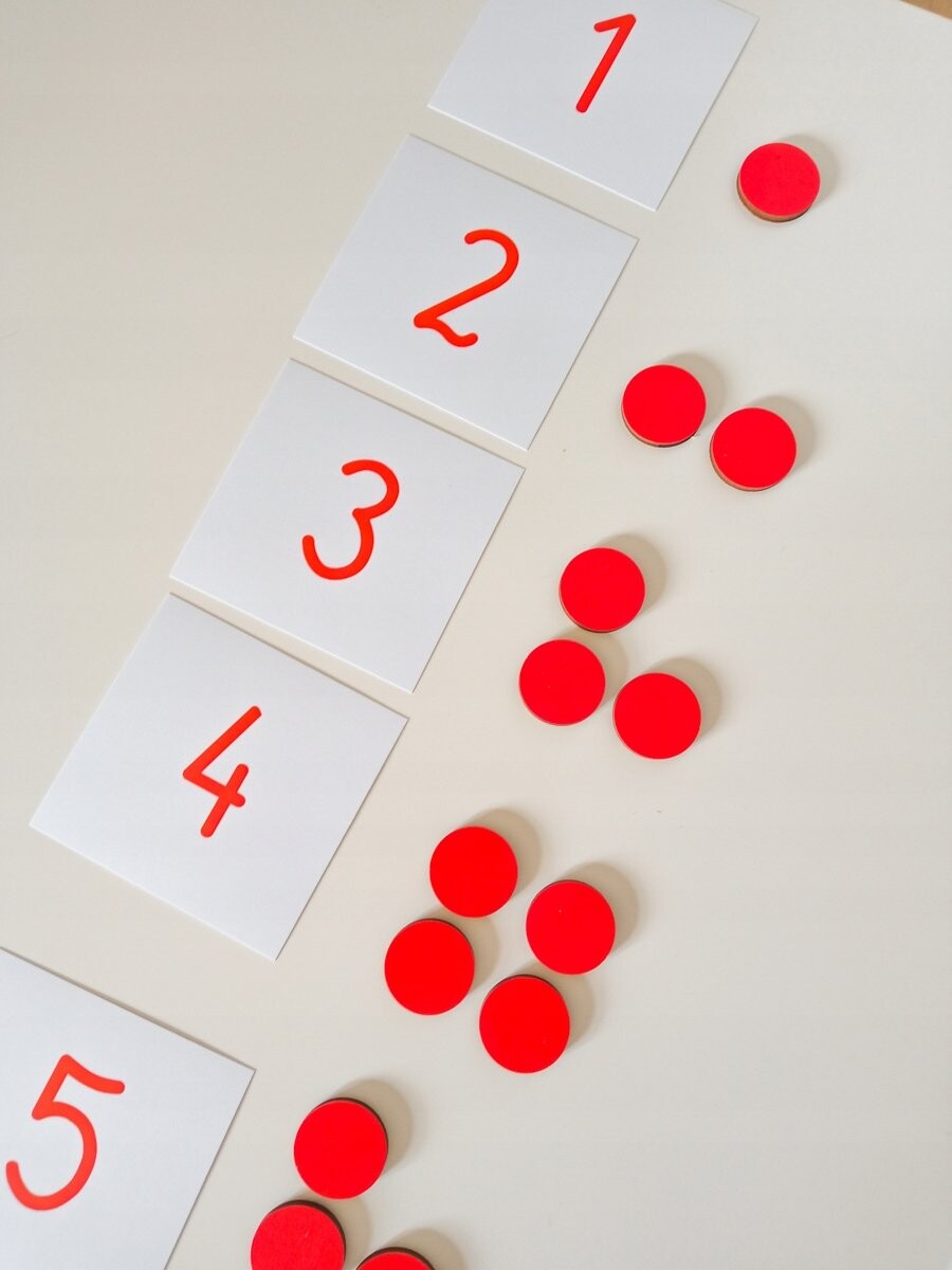 Материал цифр и жетонов: крашеная фанера (краска разрешена для детей), обратная сторона отшлифована. Высота цифр: 12 см.