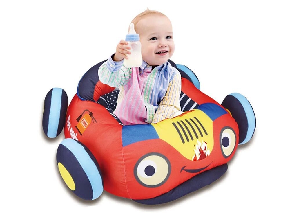 Комфортное и удобное первое сиденье для вашего ребенка. Графика сидений воспроизведена из пожарной машины. К сидению прикреплены мягкие колеса, которые придают автомобилю характер. Мягкое кресло имеет широкие боковые спинки, устойчивую опору для спины ребенка, боковинки и передняя часть кресла приятны на ощупь. Если он испачкается, просто промойте его тканью и водой. Устойчивое детское кресло может стать первой опорой, когда ваш ребенок начнет сидеть.