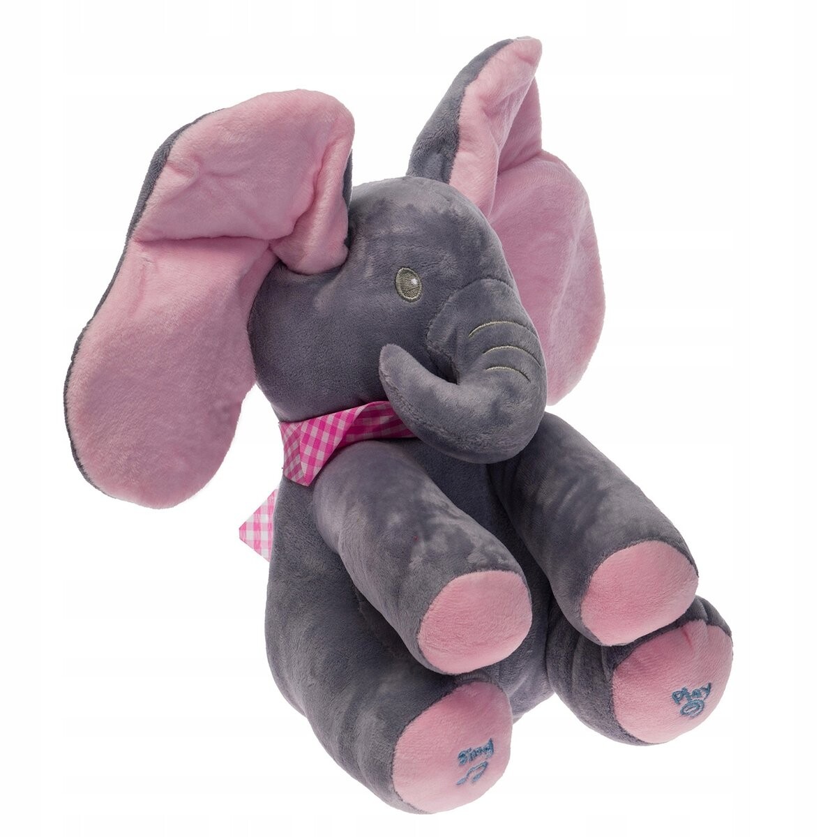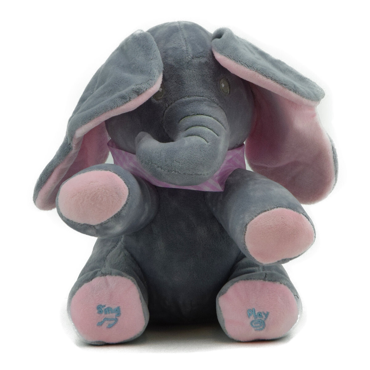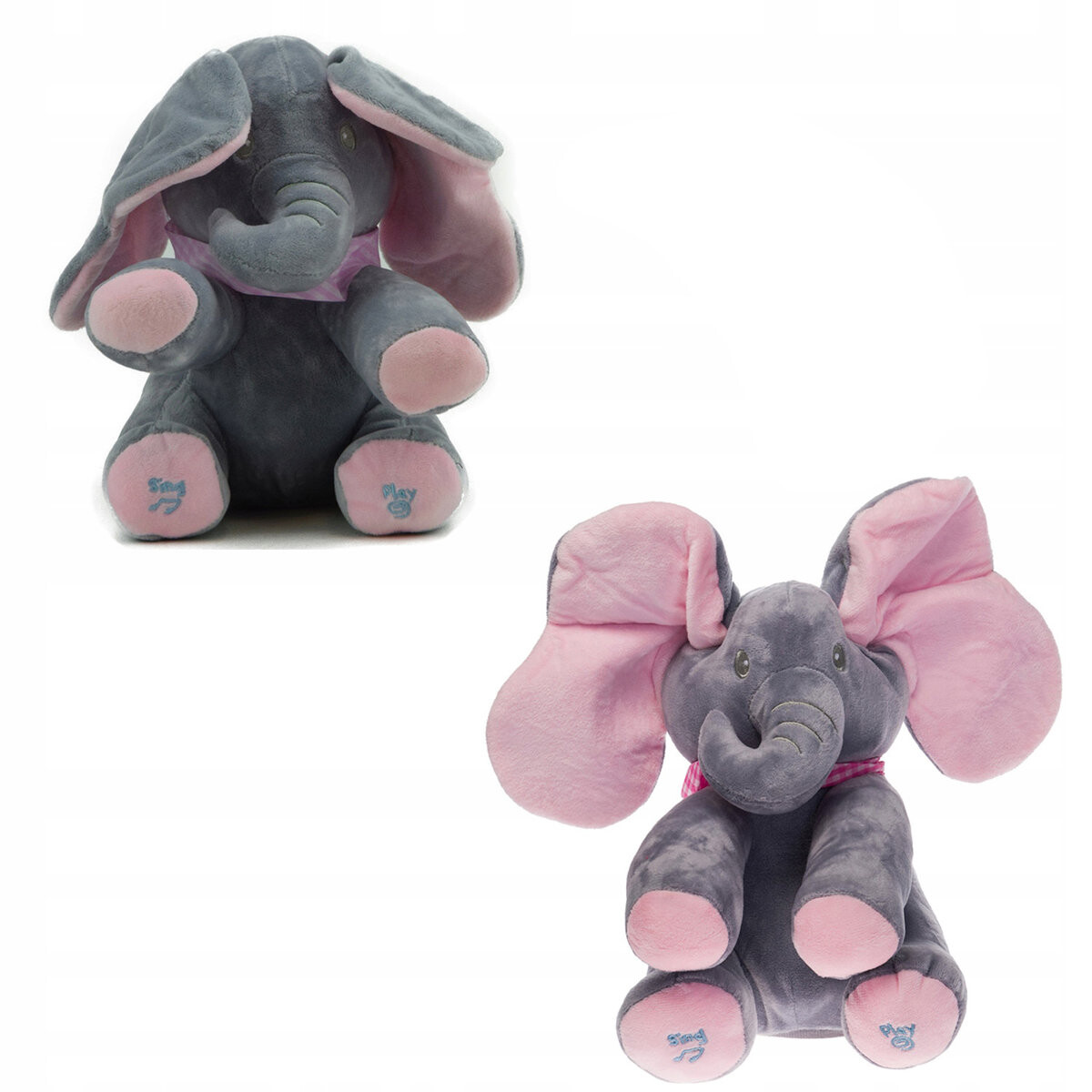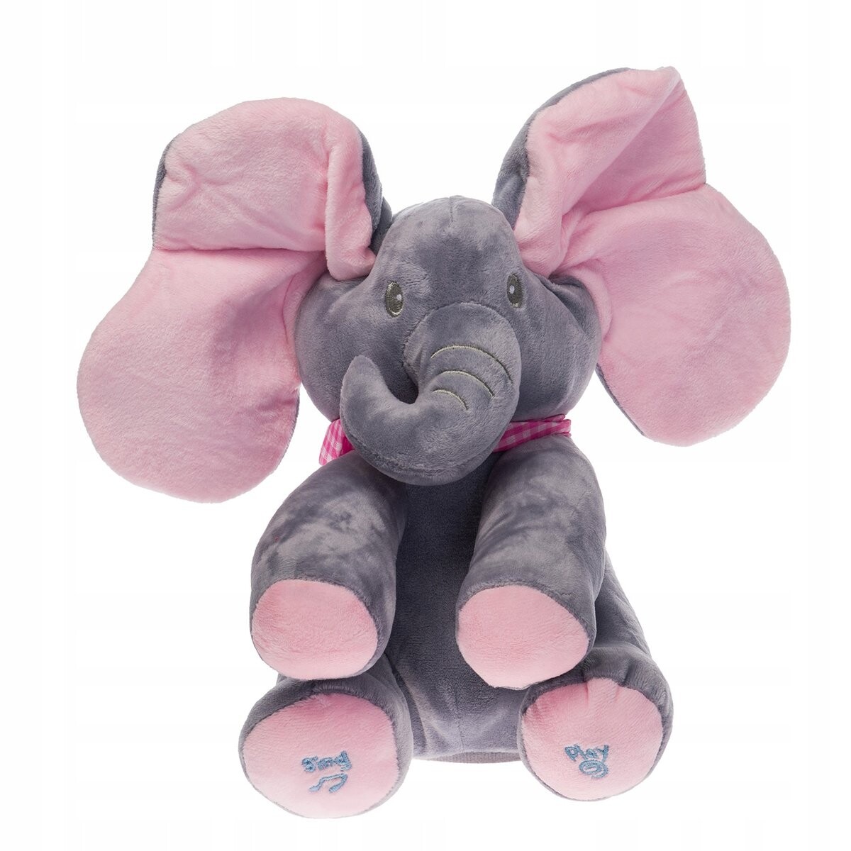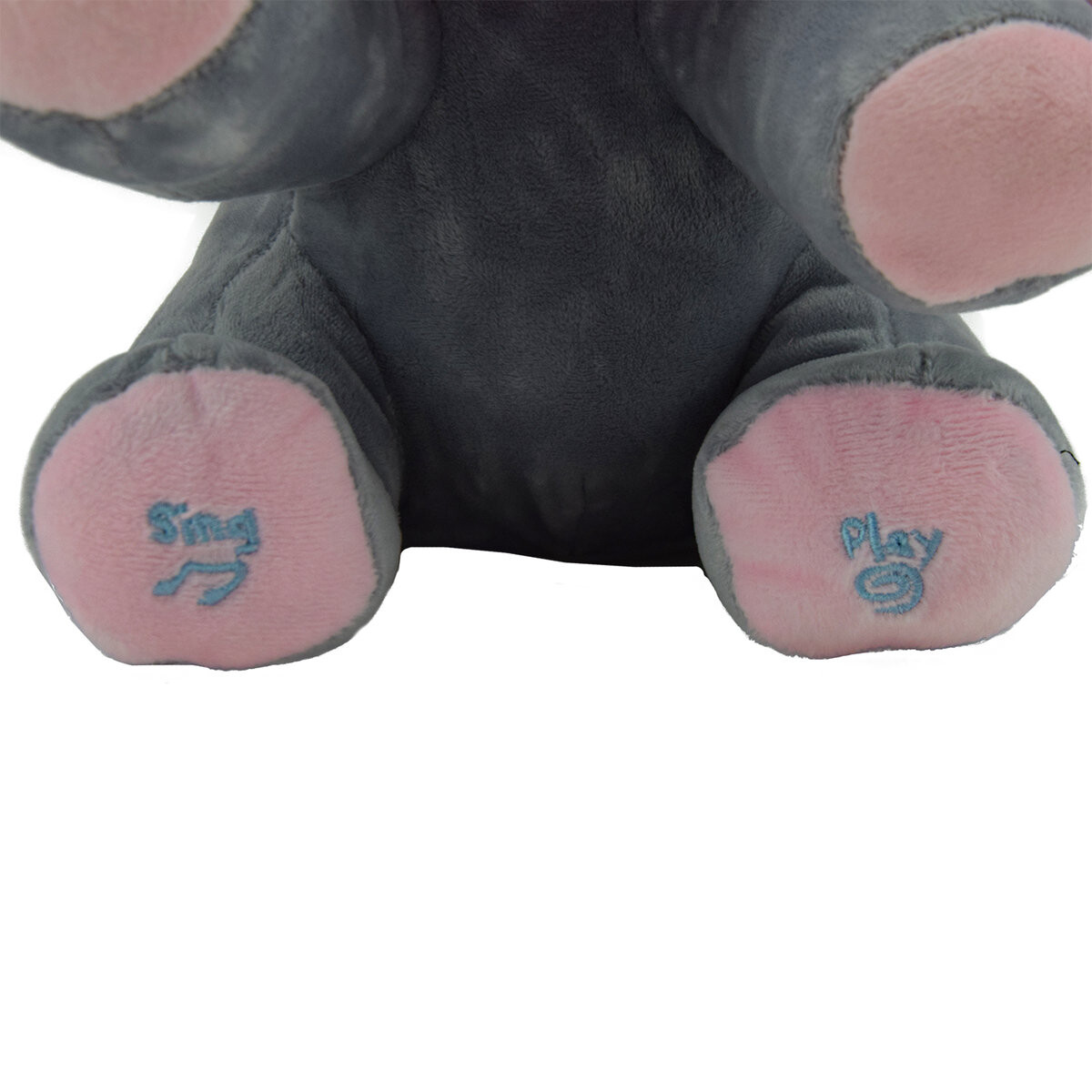 ✔ После нажатия кнопка на правой ноге слоненок «ИГРАТЬ» разговаривает и играет в прятки с вашим ребенком (закрывая глаза ушами)