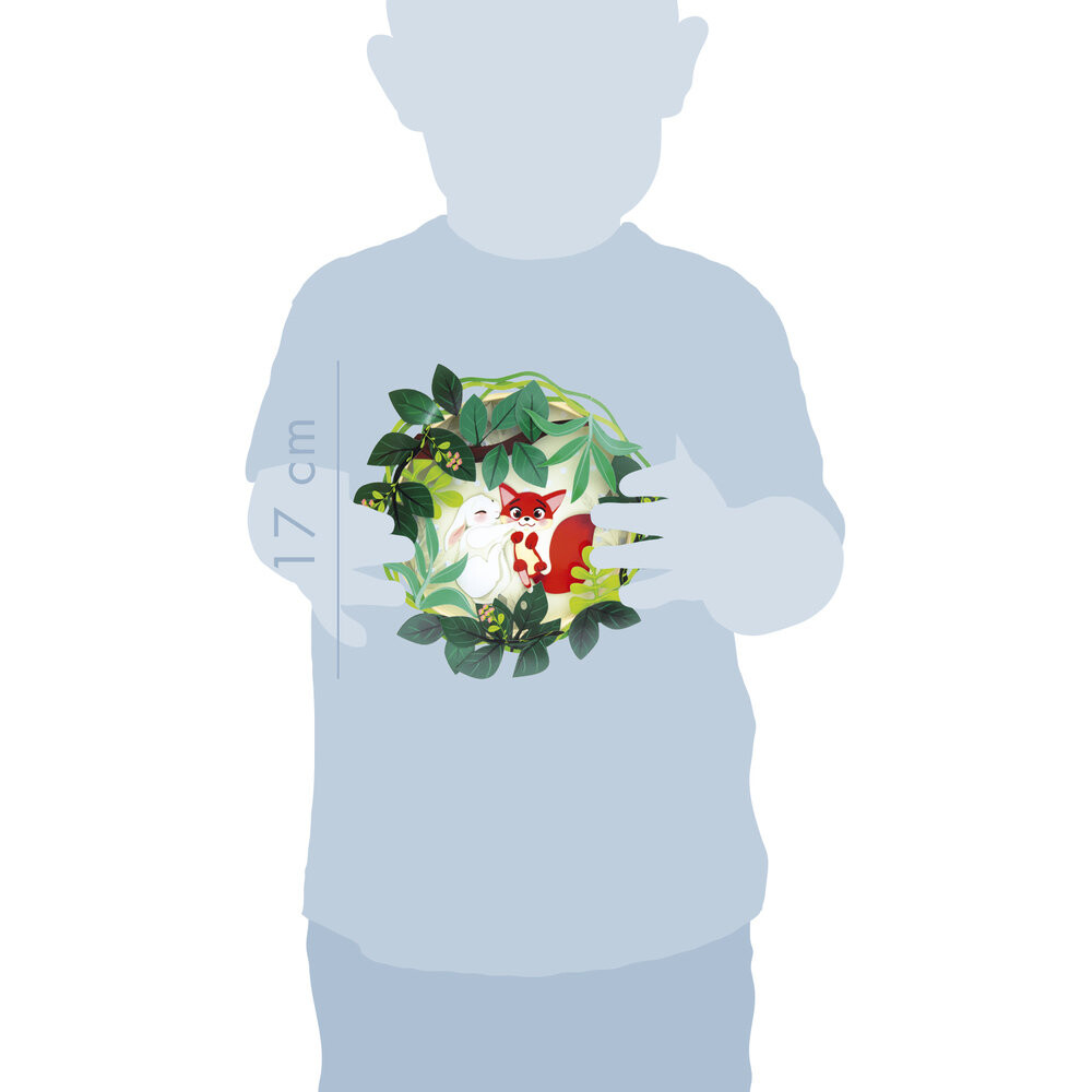 Содержимое: листы с заранее вырезанными бумажными элементами для создания украшений. , 1 купол на деревянной подставке (Д: 10 см, В: 13 см), 2 бамбуковых кольца Д: 13 см, 1 крючок, 20 бусин, кольцо для подвешивания, веревка, клей.