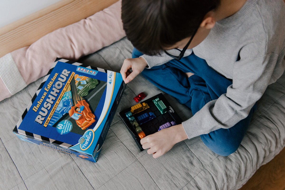 Час пикDeluxe — игра, развивающая умение последовательно мыслить. Игра предполагает расстановку разноцветных автомобилей на доске в конфигурацию с использованием одной из 60 карточек с заданиями. а затем, двигаясь только по вертикали и горизонтали, выведите красную машину из пробки.