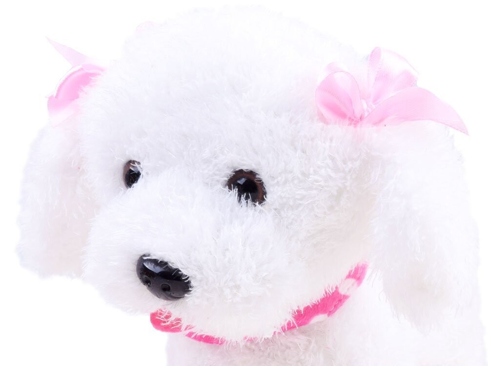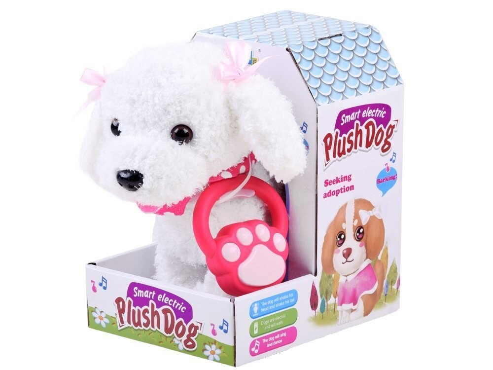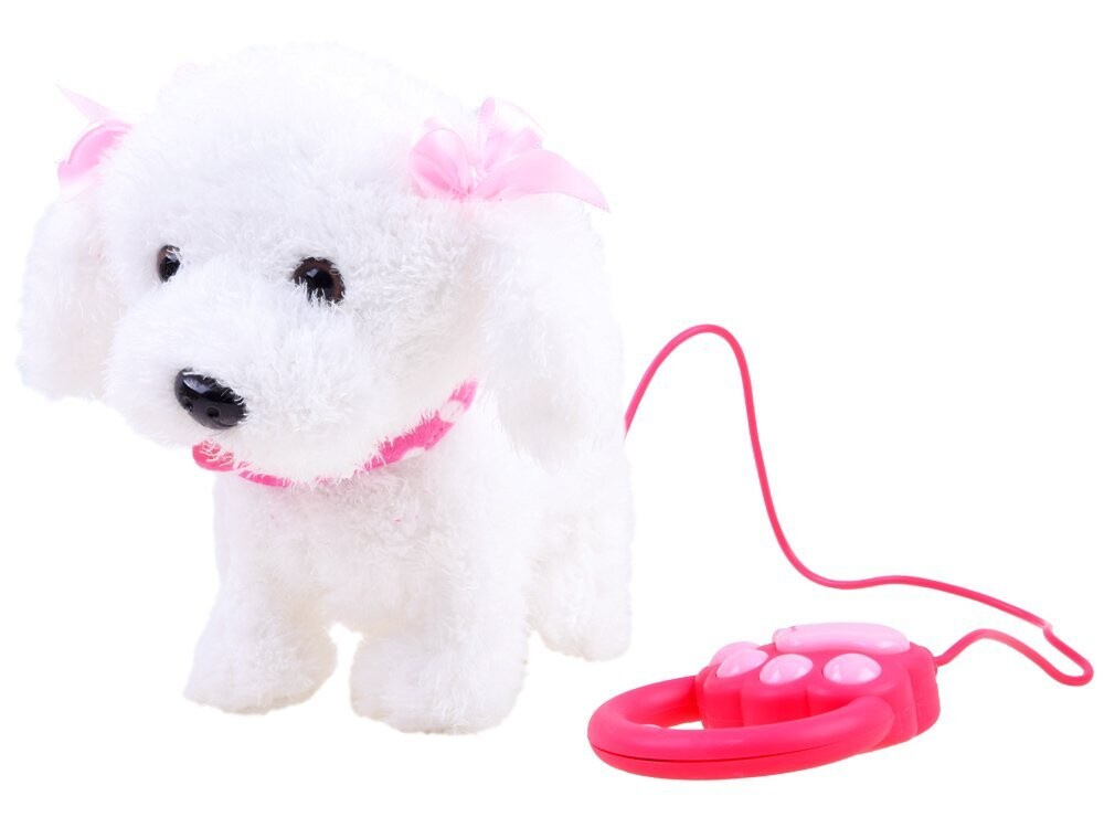 Интерактивная собака на поводке может заменить мечту ребенка о настоящем домашнем питомце. Наверное, нет ребенка, который не мечтал бы о собственной собаке. Плюшевая интерактивная собака питается от трех батареек АА напряжением 1,5 В, благодаря которым она может лаять, ходить, вилять хвостом и скулить. На прикосновения и поглаживания ребенка собака отвечает лаем, вилянием хвоста и радостью.