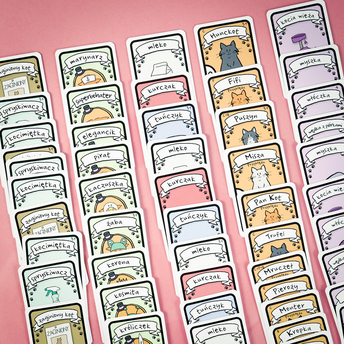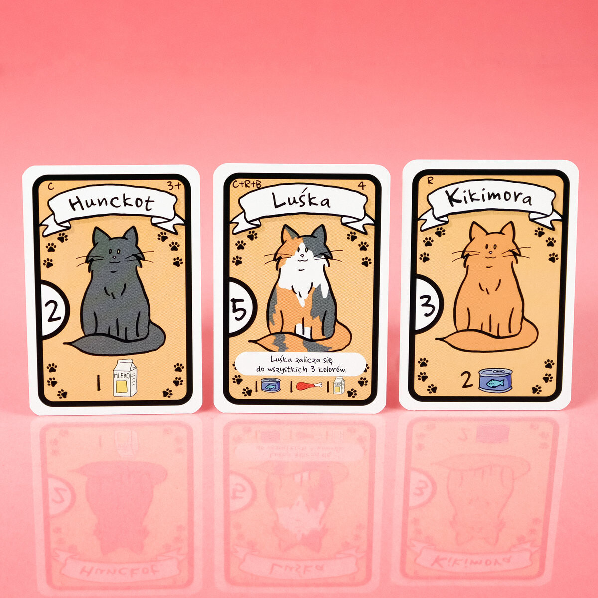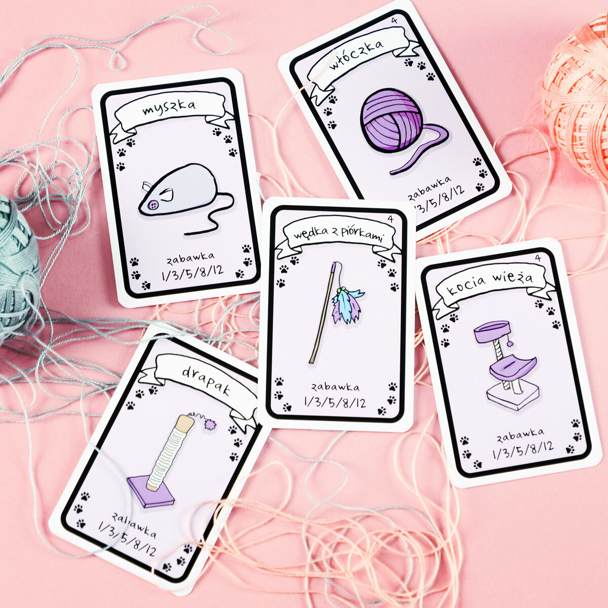 Во время игры вы будете вытягивать карты со стола и получать кошачьи игрушки, лакомства и одежду. Однако чаще всего вы встретите кошек, о которых необходимо правильно заботиться. Но ты должен помнить что за каждого заброшенного пушистого зверька вы будете получать минусовые баллы, поэтому они не смогут ничего пропустить!