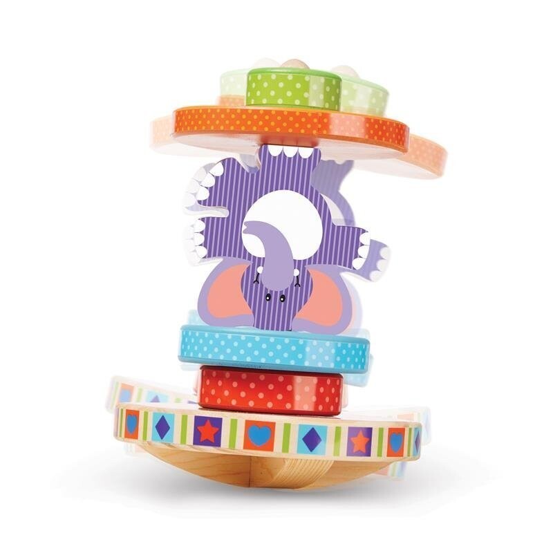 Этот слон – мастер акробатики! Находясь на вершине или в середине шаткой пирамиды, трудно удерживать равновесие. К тому же, элементы различной формы и разноцветные не облегчают ему эту задачу. Шесть частей кругов и слон на полукруглой основе образуют набор/игру.