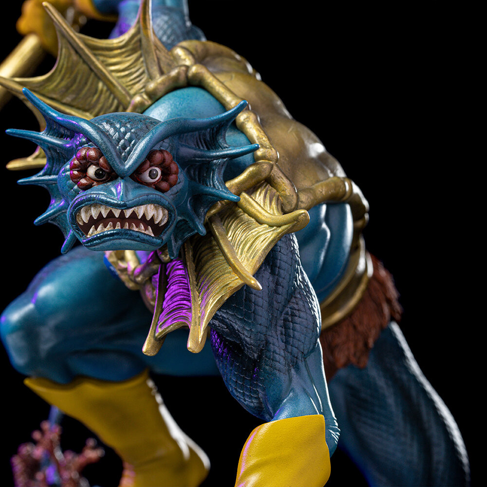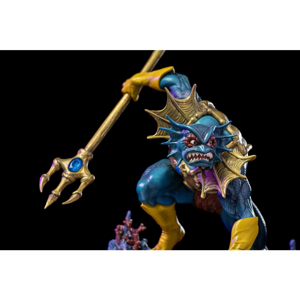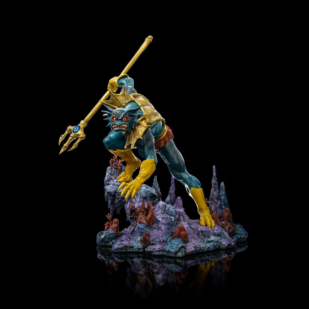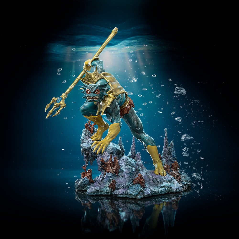 Iron Studios представляет статую повелителя морей Этернии! Склонившись над морскими скалами, сталагмитами и кораллами в глубинах океана Этернии, гуманоидный правитель народа, известного как Акватиканы, готовится атаковать и отразить любого злоумышленника в его владениях, владея своим золотым трезубцем и показывая ярость на лице. Часть его зеленокожего тела частично покрыта чешуей и защищена золотой нагрудной броней с наплечниками в форме плавников. Iron Studios представляет статуэтку «Mer-Man BDS — Masters of the Universe — Art Scale 1/10» с рыбной линейкой. из подводного королевства, союзник сил Скелетора и член Злых Воинов Этернии. Военачальник родом из Хрустального моря на планете Этерния и один из первых слуг Скелетора, хотя и подчиняется Злому Лорду на Змеиной горе, Морской Человек большую часть времени живет и действует в своих владениях на дне океана. неоднократно действовавший независимо от других злых воинов, самопровозглашенный король морей и правитель собственного подводного царства, за которым следовали его водные приспешники, служившие ему солдатами. В прошлом, пытаясь командовать Баккуллом, самым могущественным из морских демонов, он попытался принести в жертву Зоар, Колдунью в ее форме сокола, но был остановлен Человеком в Бронированных доспехах. Двадцать лет спустя он попробовал это снова, на этот раз пытаясь принести в жертву дочь Малефисенты, Тилу, но его планам снова помешали, на этот раз Хи-Ман и Зоар. Морской Человек обладает телепатическими способностями, которые позволяют ему управлять другими морскими существами, и он почти непобедим под водой. В сериале «Повелители Вселенной 2021: Откровение», созданном Netflix, Моряка озвучивает Кельвин Конрой. Американский актер, широко известный как голос Бэтмена во многих других СМИ. Расширяя свою коллекцию представителей Злых Воинов в линейке статуй MOTU, Iron Studios представляет Mer-Man, подробно представленный на ноябрьском мероприятии Inside Iron Studios Day на YouTube. Статуэтка уже доступна для предзаказа.