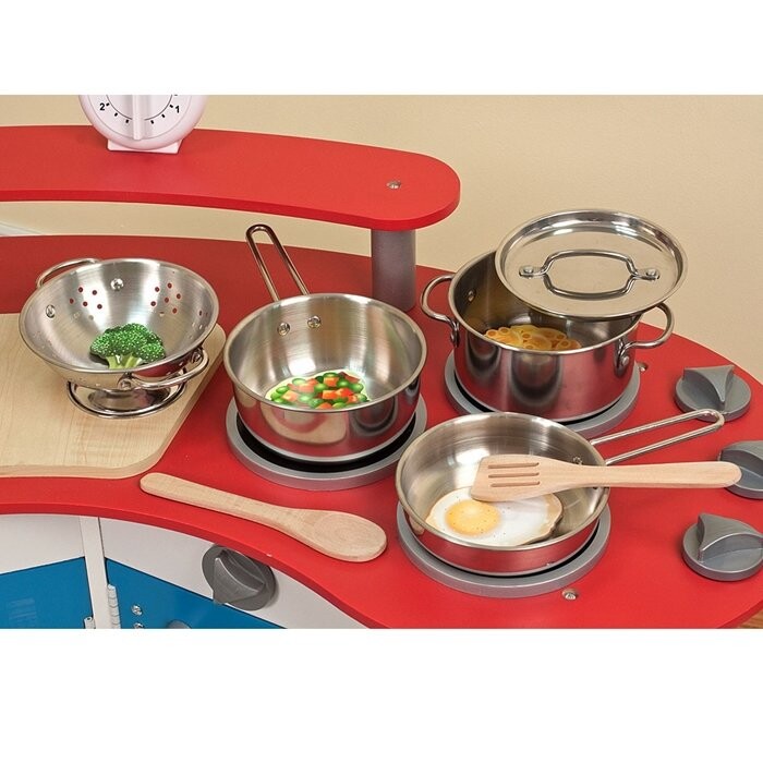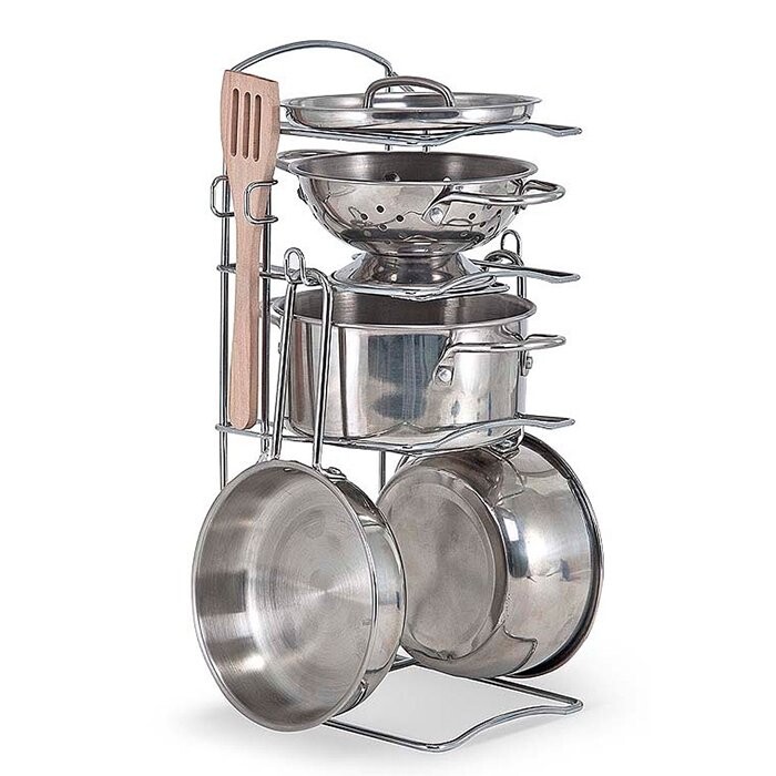 Металлическая посуда из нержавеющей стали с реалистичным видом, благодаря которой ребенок сможет «приготовить» ужин для родителей, друзей или поиграть в ресторан.