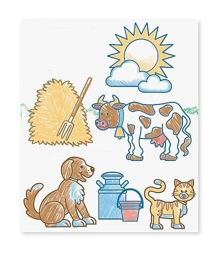 - набор для каждого маленького художника, благодаря которому он сможет создавать бесчисленное количество сценок с участием друзей с фермы – овцы, кролика, свиньи, сарая, трактора и других элементов набора позволяют переехать на загородную ферму, не выходя из дома.