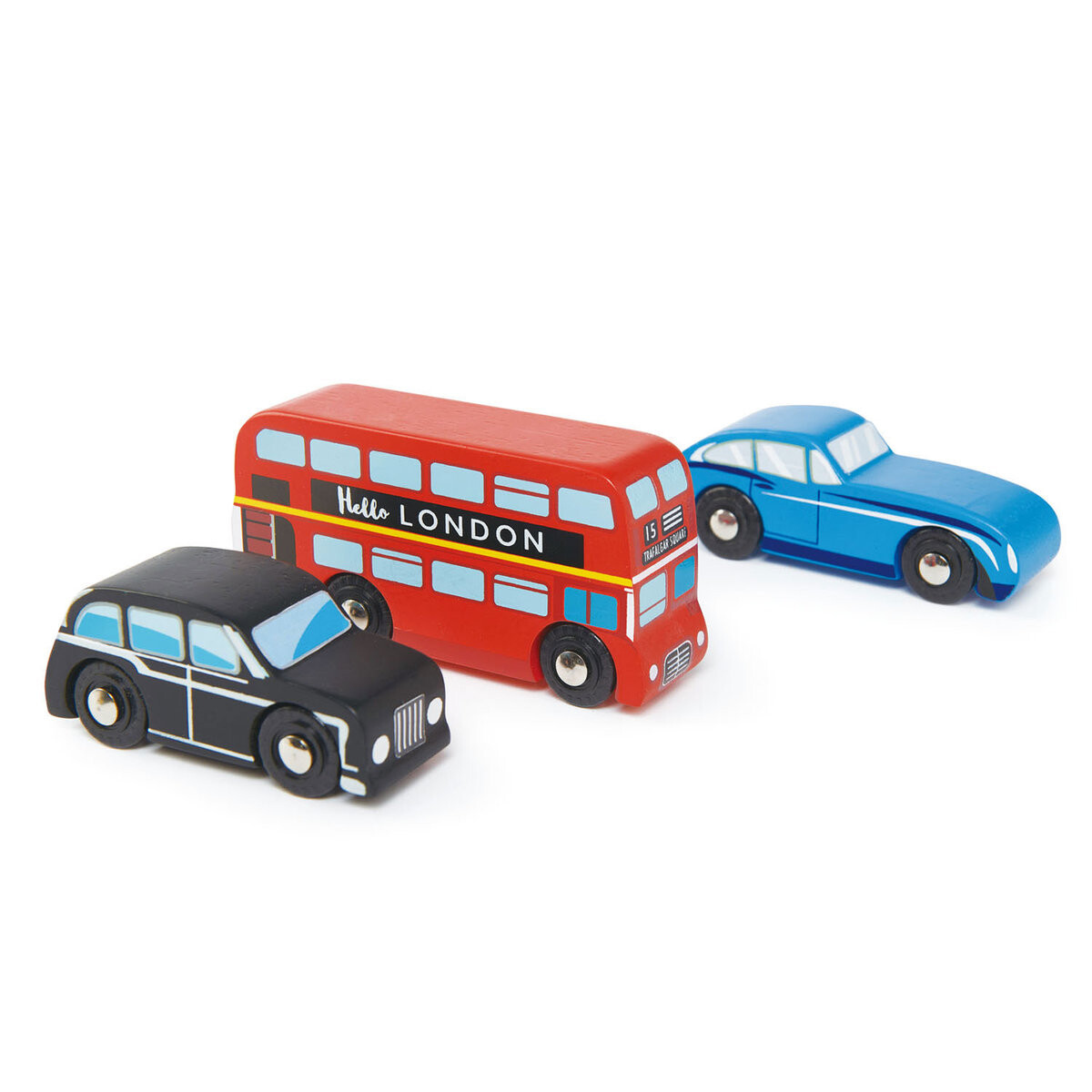 Набор деревянных машинок «Лондон», 3 предмета, транспортные средства Tender Leaf Toys London для маленьких автолюбителей! 3 красочных деревянных автомобиля «Лондон» — отличный подарок для маленьких автолюбителей! В набор входят такси, двухэтажный автобус и стильный синий автомобиль. Приглашайте друзей и веселитесь вместе! Тщательное исполнение и красивые цвета – в Tender Leaf Toys нам очень важны такие детали!