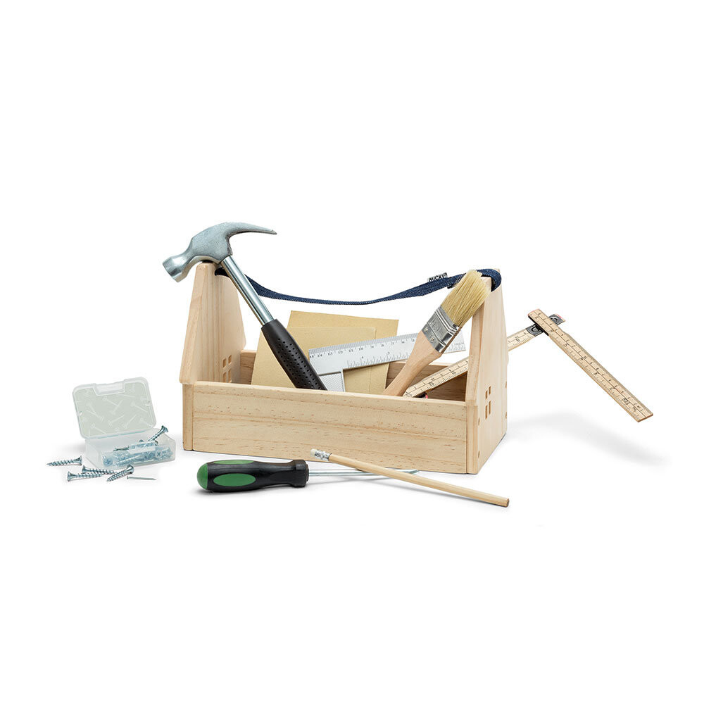 Начните свою страсть к рукоделию с помощью большого деревянного ящика в форме домика, предназначенного для маленьких плотников! Коробка с практичной джинсовой ручкой и мягким дном содержит полный набор инструментов, идеально подходящий для юного любителя DIY. В коробке вы найдете молоток, отвертку, долото, складной калибр, транспортир, ручку, наждачную бумагу, а также упаковку шурупов и гвоздей — все необходимое, чтобы ваш малыш перенесся в увлекательный мир рукодельных задач. Игрушки такие же прочные, как и взрослые, а их размер идеально помещается в маленькие ручки. Теперь каждый маленький плотник сможет насладиться полным набором инструментов для творчества своими руками!