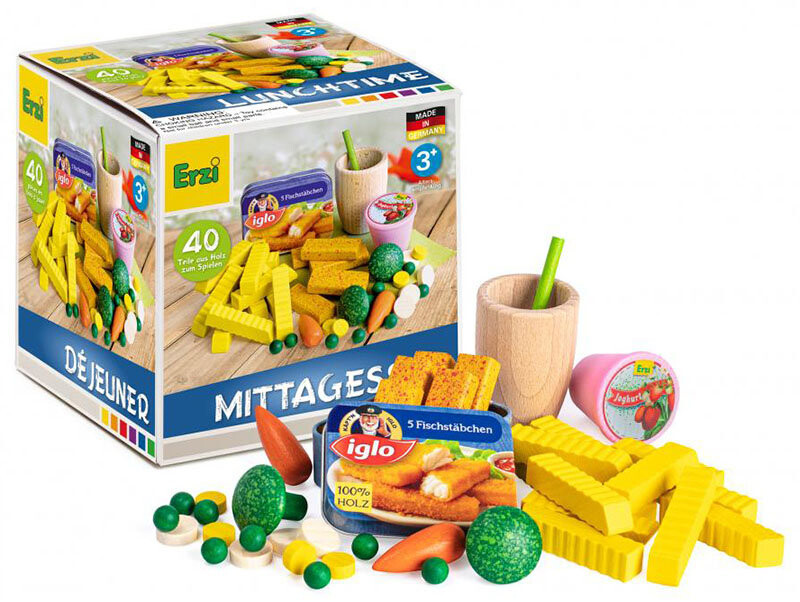 Вдохновляющий набор «Обед» от немецкого бренда Erzi позволит вашему ребенку почувствовать себя шеф-поваром или родителем, готовящим еду для своих детей. Деревянный набор для игры в кулинарию или шопинга содержит целых 40 элементов, изготовленных из высококачественного -качественная древесина бука. Каждое из продуктов, имитирующих еду, выглядит очень реалистично. Набор произведен в Германии и имеет сертификаты безопасности CE и ASTM. В наборе: 12 картошек фри, 5 консервированных рыбных палочек «Игло», 1 клубничный йогурт, 1 соломинка, 1 чашка, 2 соцветия брокколи, 2 моркови, 8 горошин, 4 зерна кукурузы, 4 кусочка цветной капусты.