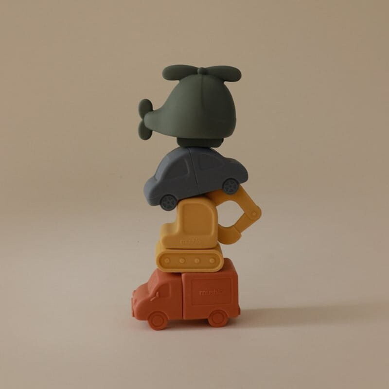 Набор состоит из 4 фигурок из пищевого силикона: вертолета, автомобиля, грузовика и экскаватора. Они созданы для того, чтобы стимулировать чувства детей и поддерживать их когнитивное развитие.