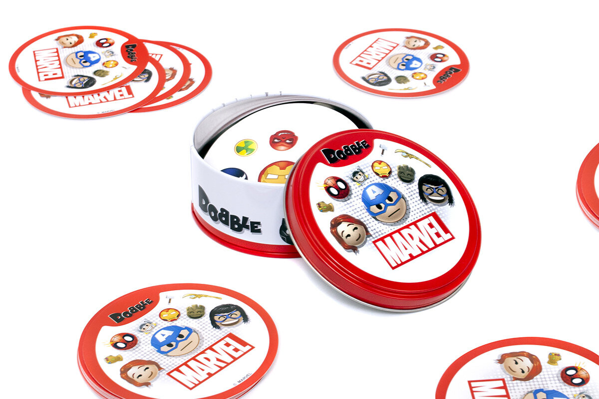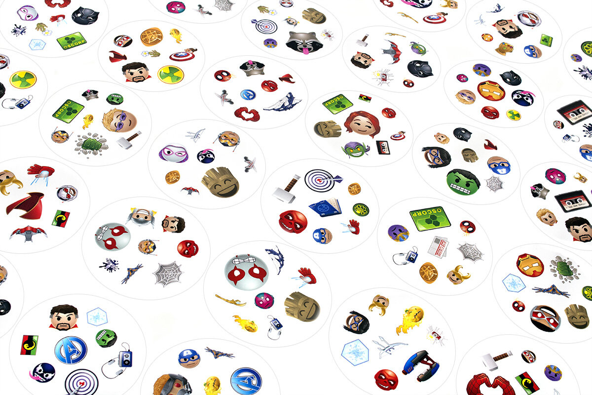 Эмодзи Доббл Марвел можно разыгрывать разными способами, и 5 из в руководстве они описаны как мини-игры. Чтобы усложнить игру, символы на картах иногда перевернуты и имеют разный размер. Сами карточки круглые и красочные. и каждый из них обладает уникальным набором графики, связанной с миром супергероев Marvel. Почему вам понравится эта игра?