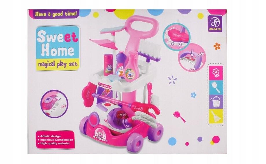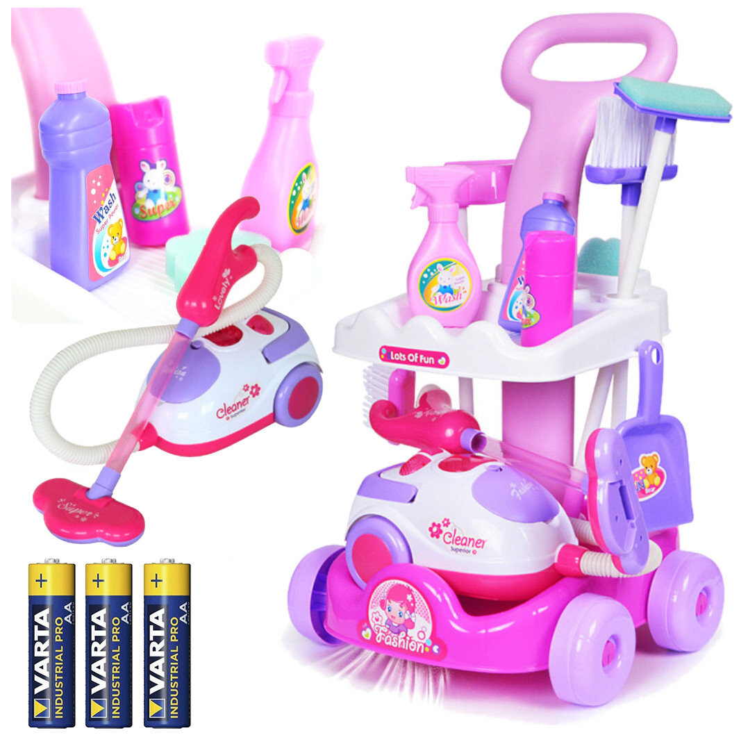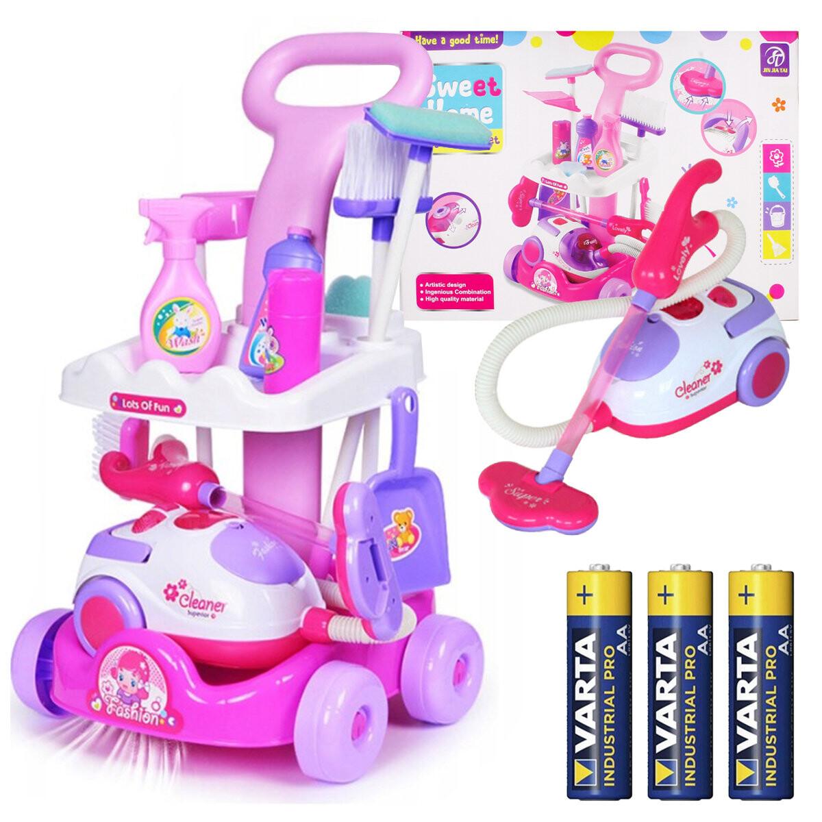 пылесос на аккумуляторе - работает как настоящийдлинная щетка с совком маленькая подметальная щетка моющее средство для окон с губкой губка для мытья 3 вида чистящих средств мешок с шариками для пылесоса – вносит разнообразие в интерьер веселоЦвета: розовый-белый-фиолетовый Весь набор состоит из 11 элементов:
