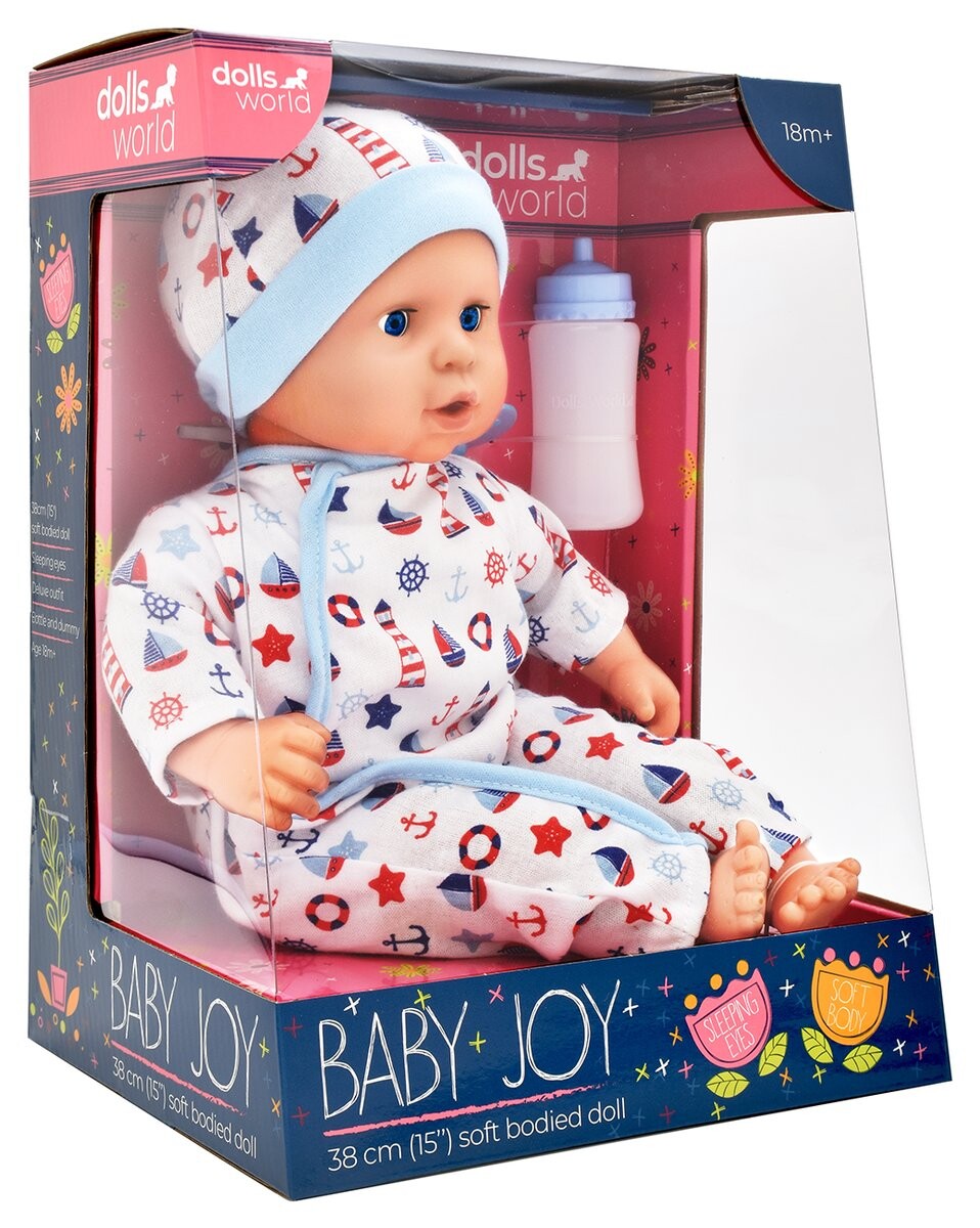 Кукла Бэби Джой, размер 38 см, наполненная фасолью. У него спящие глазки, уникальный комбинезон, шапочка, бутылочка и соска.