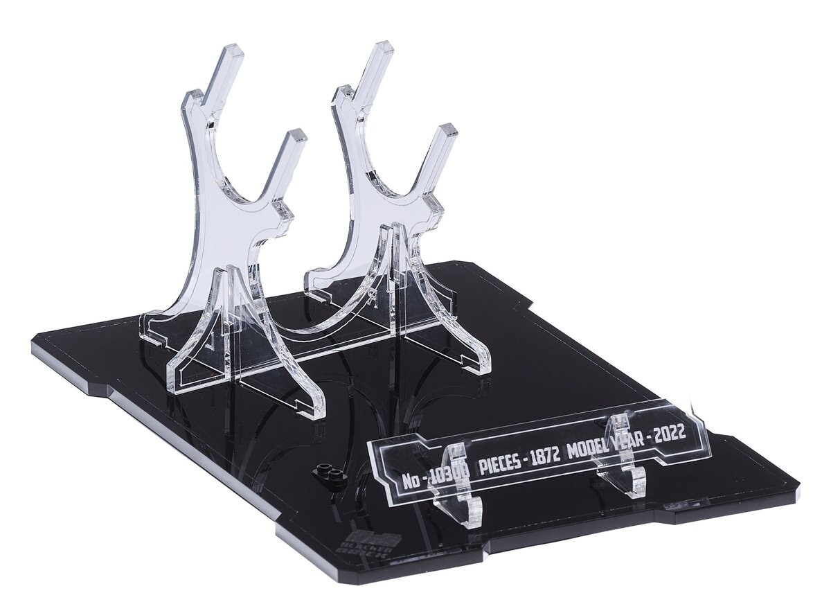 Покажите свой набор «Машина времени DeLorean» LEGO 10300 Creator Expert уникальным способом с помощью подставки Blacked Brick! Изготовленная из прочного оргстекла толщиной 5 мм, производства Польши, подставка была разработана специально для этого набора, чтобы подчеркнуть его динамичный внешний вид в полете.