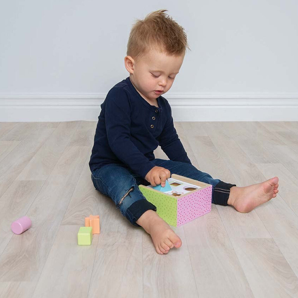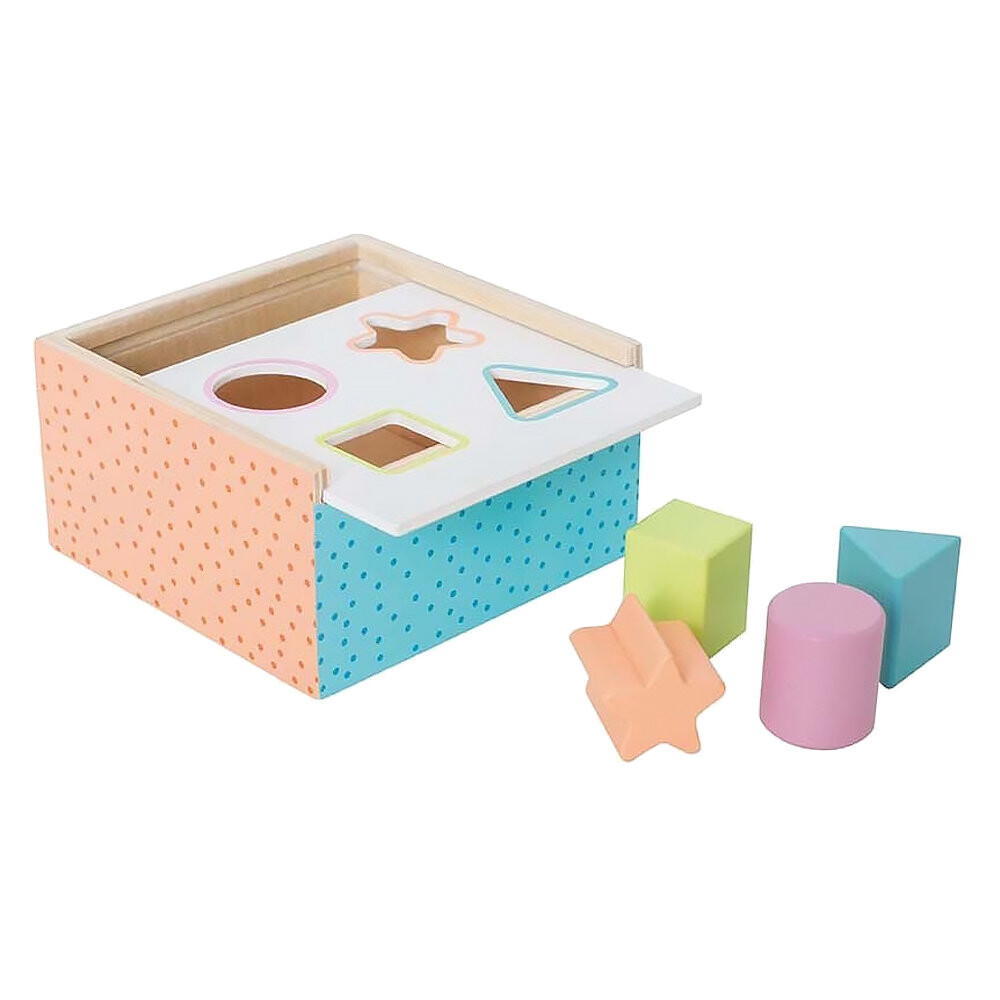 Забавная коробка для сортировки фигур поможет детям практиковать и развивать моторику, узнавать формы и цвета.