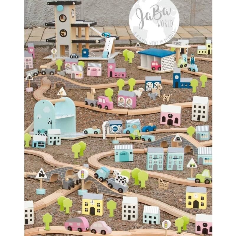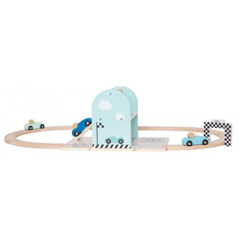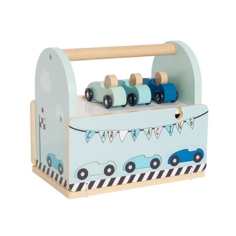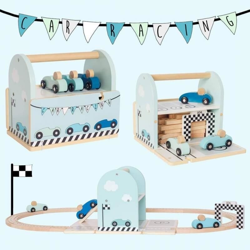 Раз, два, три – готово. Пришло время веселиться. Кто первым достигнет пункта назначения? Отличный набор для творческой игры, вызывающий массу эмоций. Этот гоночный автомобиль содержит три гоночных болида, каждый разного оттенка синего цвета, двенадцать элементов деревянной трассы — дороги для сборки, финишную черту и рампу, а также коробку — загон для старта гонки, который также служит практичная коробка для хранения и переноски всего набора. Эта превосходная гоночная трасса подарит много часов увлекательного веселья. Он также подходит для других игрушек бренда Jabadabado, таких как: заправочная станция, автомобильные дорожки. деревянная железная дорога и совместима с другими известными брендами.