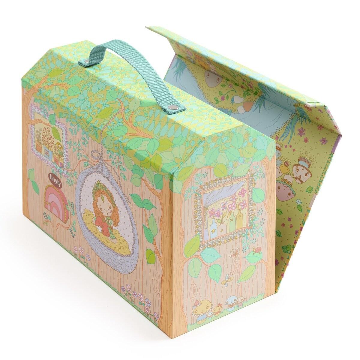 Ролевая игра развивает воображение и творческие способности ребенка. Маленький мир кукол Tinyly можно брать с собой куда угодно! Ручка чемодана изготовлена из прочной ткани. детские ручки легко схватить. Игрушка изготовлена из сертифицированной FSC бумаги и картона.
