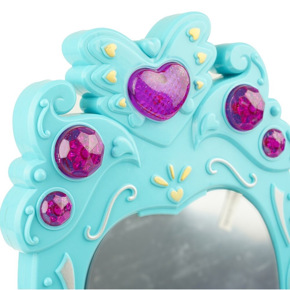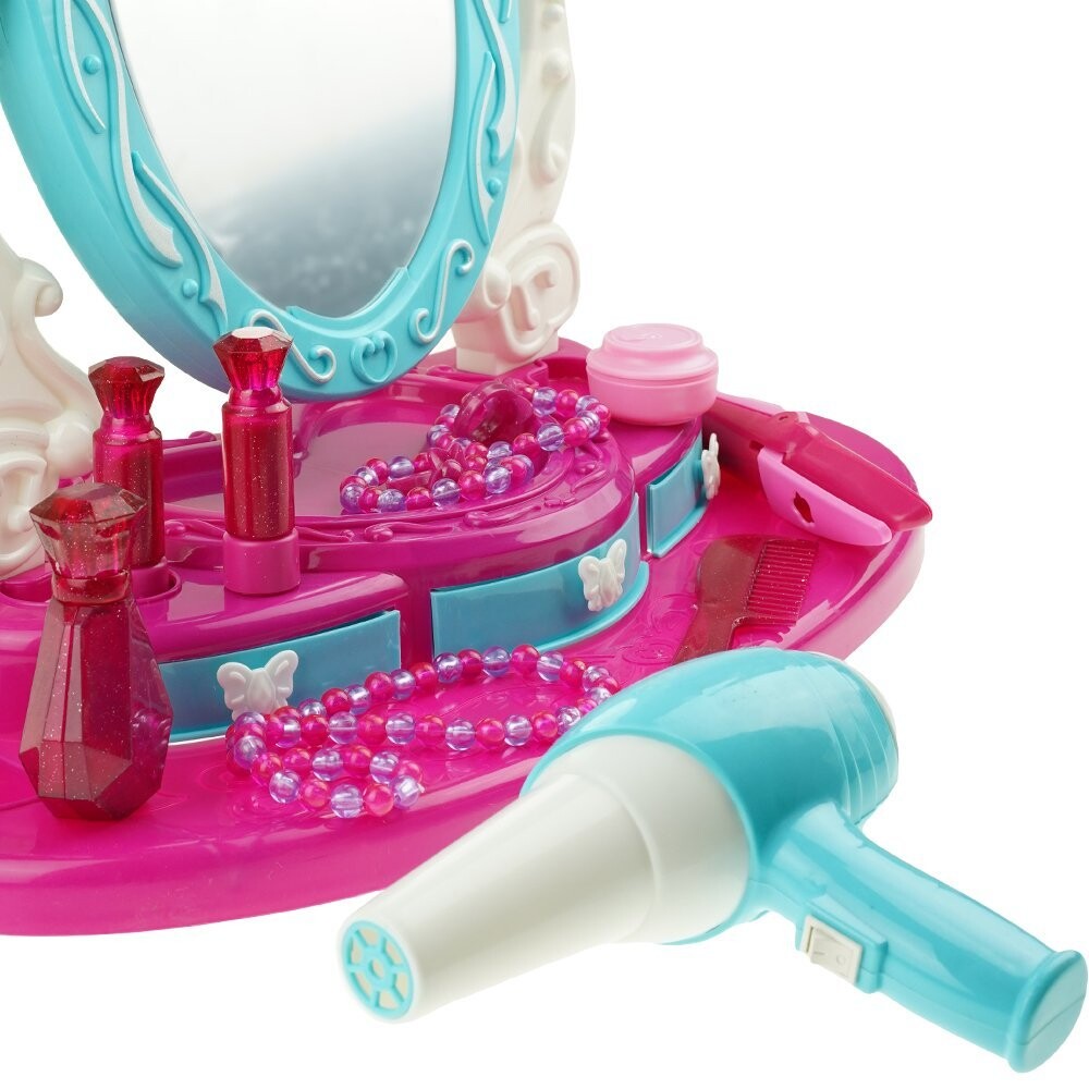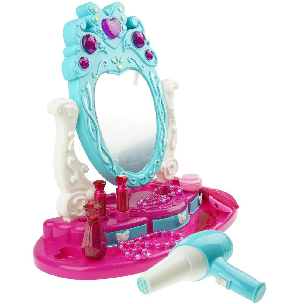 Туалетный столик с зеркалом и подсветкой побудит многих маленьких принцесс поиграть в парикмахера. Сказочный туалетный столик имеет все необходимые аксессуары, чтобы «показать себя богом». Маленькая принцесса легко сможет подражать своей маме или сестре и научится делать красивую прическу.