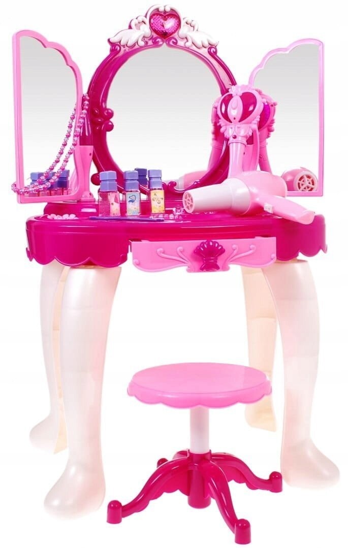 Представленный туалетный столик с богатым оснащением может стать прекрасным дополнением к одной из детских игр.