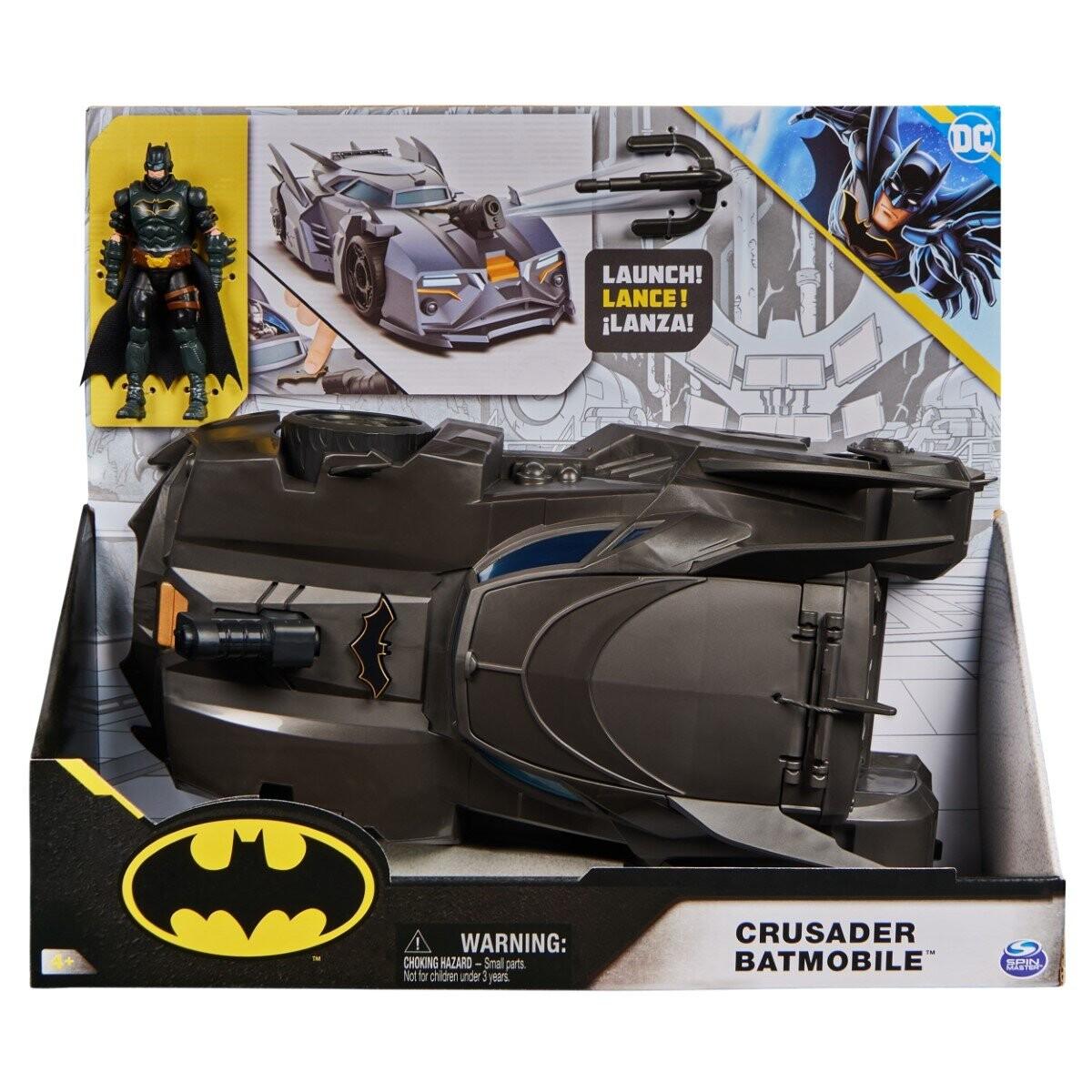 •ИГРОВОЙ НАБОР BATMOBIL CRUSADER: позвольте вашему ребенку испытать захватывающие приключения в Готэм-сити с Бэтмобилем Crusader! В набор входит эксклюзивная 4-дюймовая фигурка Бэтмена и три бумажные фигурки Суперзлодеев.