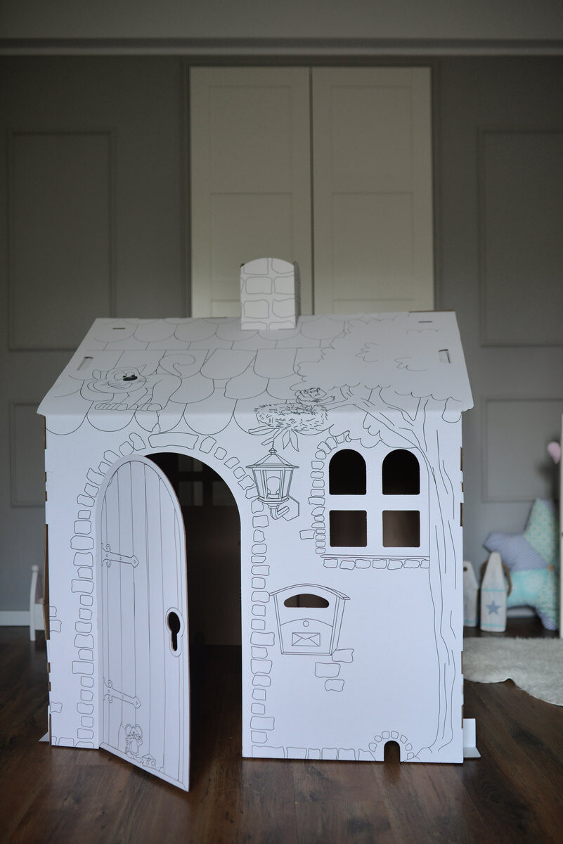 Предлагаем большой картонный домик для раскрашивания как интересную альтернативу проведению свободного времени с детьми в мире, полном медиа и Интернета. КАРТОННЫЙ ДОМ ДЛЯ ДЕТЕЙРазвивающая игрушка для детейМы часто задаемся вопросом, как сделать праздник для наших детей более интересным. Попробуйте удивить их, обустроить домик, подарить им краски, мелки, фломастеры – вы не поверите, сколько развлечений такой домик может подарить детям. ОСТАНОВИТЕСЬ с мусором - вы когда-нибудь были на вечеринке, где одним из аттракционов был картонный домик - удивите всех, не дайте себя обогнать Закажите и организуйте праздник для своего малыша. Самый большой детский домик на Аллегро из белого пятислойного картона - очень прочный. Игрушка предназначена для самостоятельной сборки и покраски. Он дарит ребенку множество незабываемых впечатлений и способствует обучению и развитию. Играя вместе с родителями, давайте обеспечим нашим детям чувство интеграции. В то же время мы стимулируем развитие художественных и ручных навыков, обучаясь рисованию. Мы влияем на любознательность и развиваем творческие способности и воображение, обучаясь творческому мышлению. В то же время мы можем научить ребенка ответственности за окружающую среду – ведь продукт полностью подлежит вторичной переработке. Картонный домик РАЗМЕРЫ картонного домика в разложенном виде: 110 см длина 105 см ширина 118 см высота Вес ок. 4 5кг Домик является ПОЛЬСКИМ ПРОДУКТОМ и имеет положительные тесты в области безопасности игрушек. Предназначена как игрушка для детей от 3 лет, собирается под присмотром взрослых. Игрушка упакована в картонную упаковку с инструкцией по сборке. На доме есть печать. Он никак не нарисован.