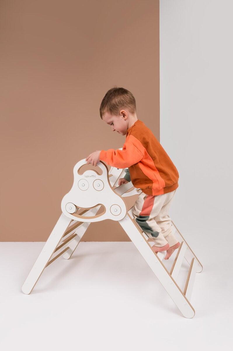 Давайте посмотрим правде в глаза: каждый ребенок, буквально каждый ребенок, любит лазить, шалить и достигать выше! Пиклер — это элемент домашней игровой площадки, который будет стимулировать вашего малыша бегать и высвобождать энергию. Треугольная лестница способствует развитию крупной моторики и попеременных движений.