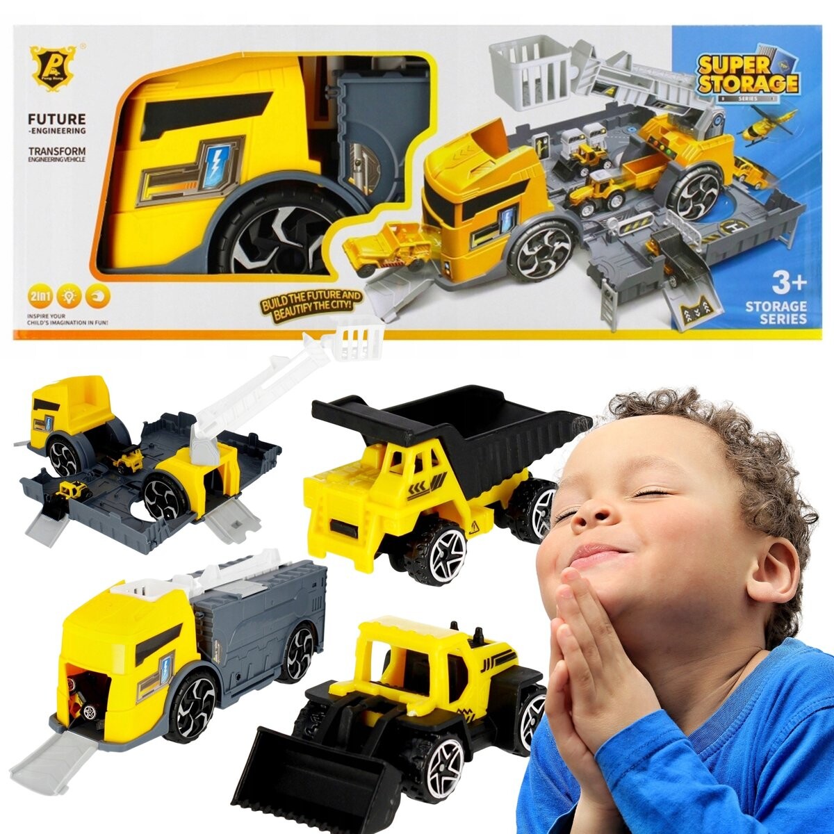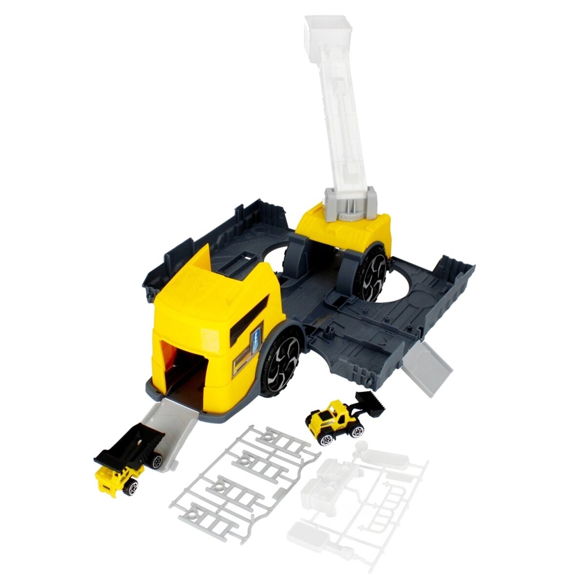 В набор входит желтый контейнер. грузовик, 2 небольших автомобиля и дорожные аксессуары, все сделано из прочного пластика, что гарантирует длительное удовольствие.