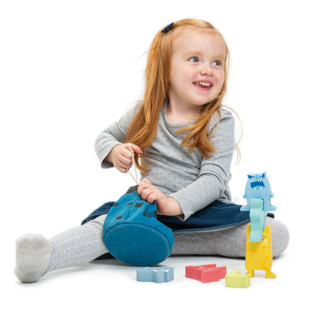 В комплект входят: 6 красочных фигурок монстров. холщовая сумка