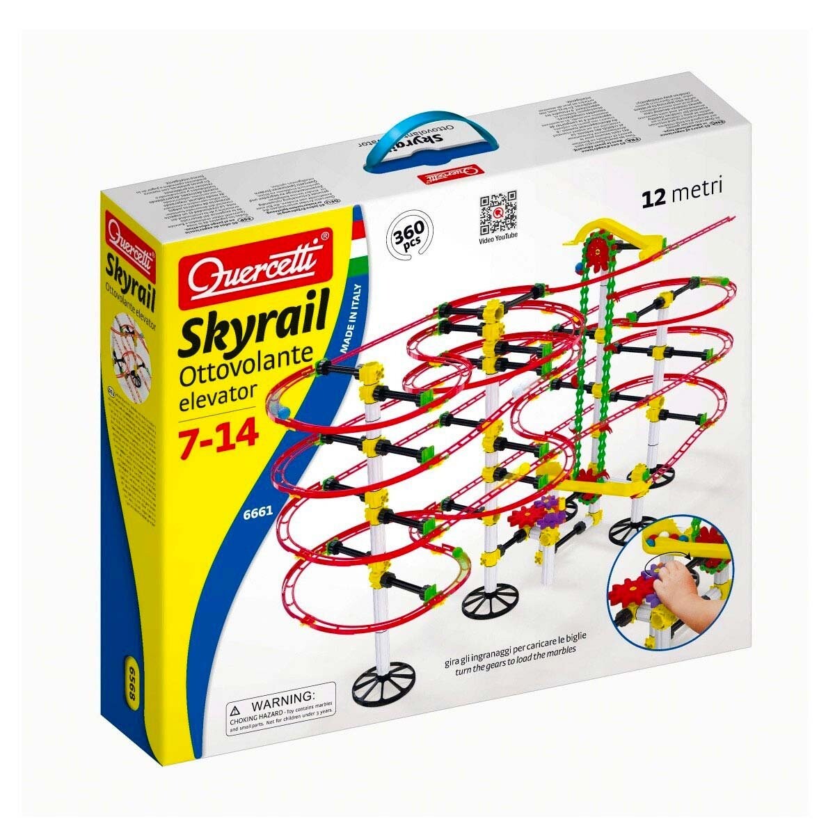 Игрушки Quercetti ценятся как родителями, учителями, так и детьми, потому что они сочетают в себе развлечение и обучение. Компания уделяет большое внимание качеству своей продукции, что способствует ее долговечности и образовательной ценности. Благодаря этому Quercetti заслужила репутацию надежного партнера в развитии детского потенциала посредством творческих и образовательных игр. Обеспечивает много часов удовольствия! Шаровая дорожка Skyrail Ottovolante от Quercetti представляет собой полный набор из 360 деталей. Это приносит образовательную ценность, обеспечивая долгие часы безопасного развлечения. Эта мраморная трасса оснащена игрушечным лифтом с ручным управлением. Таким образом, вы можете сразу втянуть мячи, а затем снова катить их по дорожке. С Skyrail Ottovolantet вы можете построить фантастические подвесные пути длиной до 12 метров. он мгновенно станет настоящей суперзвездой вашей комнаты. Благодаря новым параболическим кривым и краям трассы стали еще более захватывающими! Все детали точно спроектированы, поэтому вы можете использовать 10 шариков диаметром 19 мм. Кроме того, шарики разного размера и изготовленные из разных материалов позволяют совершать интересные наблюдения, эксперименты и открытия в мире физики, такой как скорость, гравитация, центробежная сила и трение. интуитивно понимая при этом основные принципы.