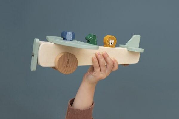 Вращайте пропеллер и отправляйтесь навстречу приключениям. Крокодил готов взлететь. Вместе с пассажирами Львом и Слоном они отправились в кругосветное путешествие. У каждого животного есть свое место. У самолета есть одно колесо спереди и еще одно спрятанное сзади, чтобы все животные могли безопасно приземлиться.