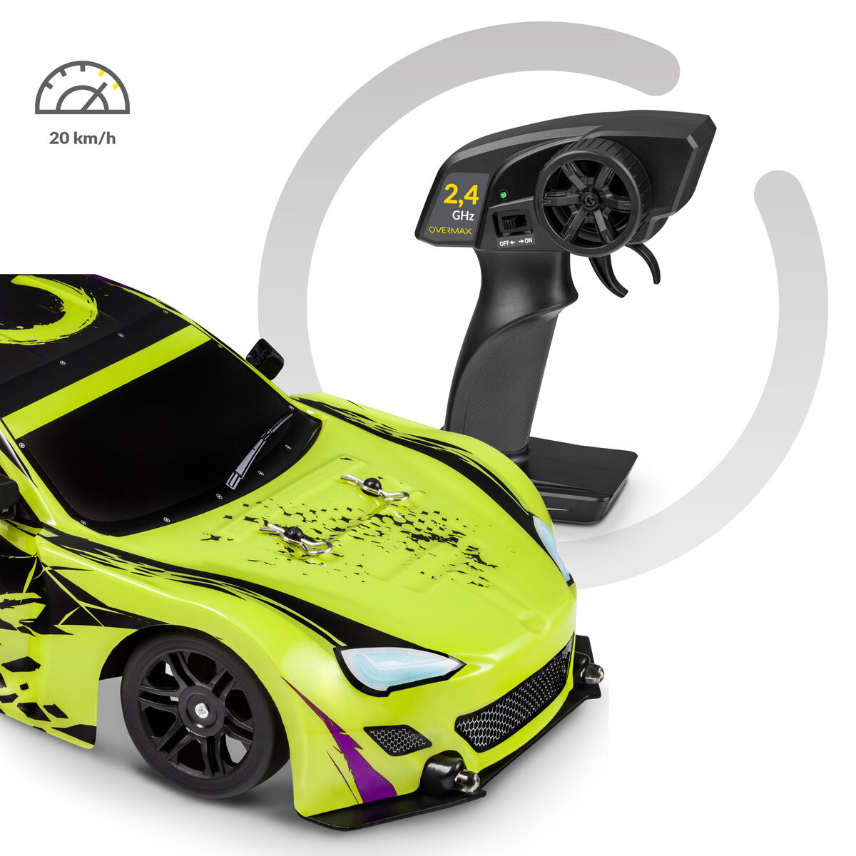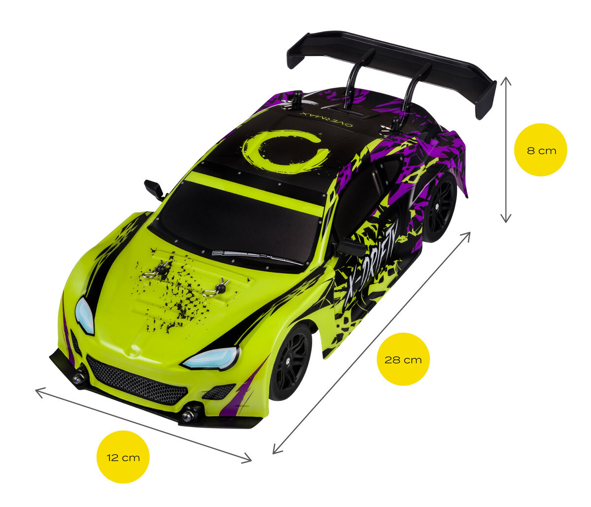 Наша машина на дистанционном управлении в масштабе 1:16 т Уменьшенная копия автомобиля. Размеры 28x12x8 см идеально подходят как для внутреннего, так и для наружного использования. гарантируя незабываемые моменты веселья. X-Drifty гарантирует долговечность благодаря усиленной конструкции. Он готов удовлетворить запросы многих сезонов, полных захватывающих развлечений. Свободное рулевое управление